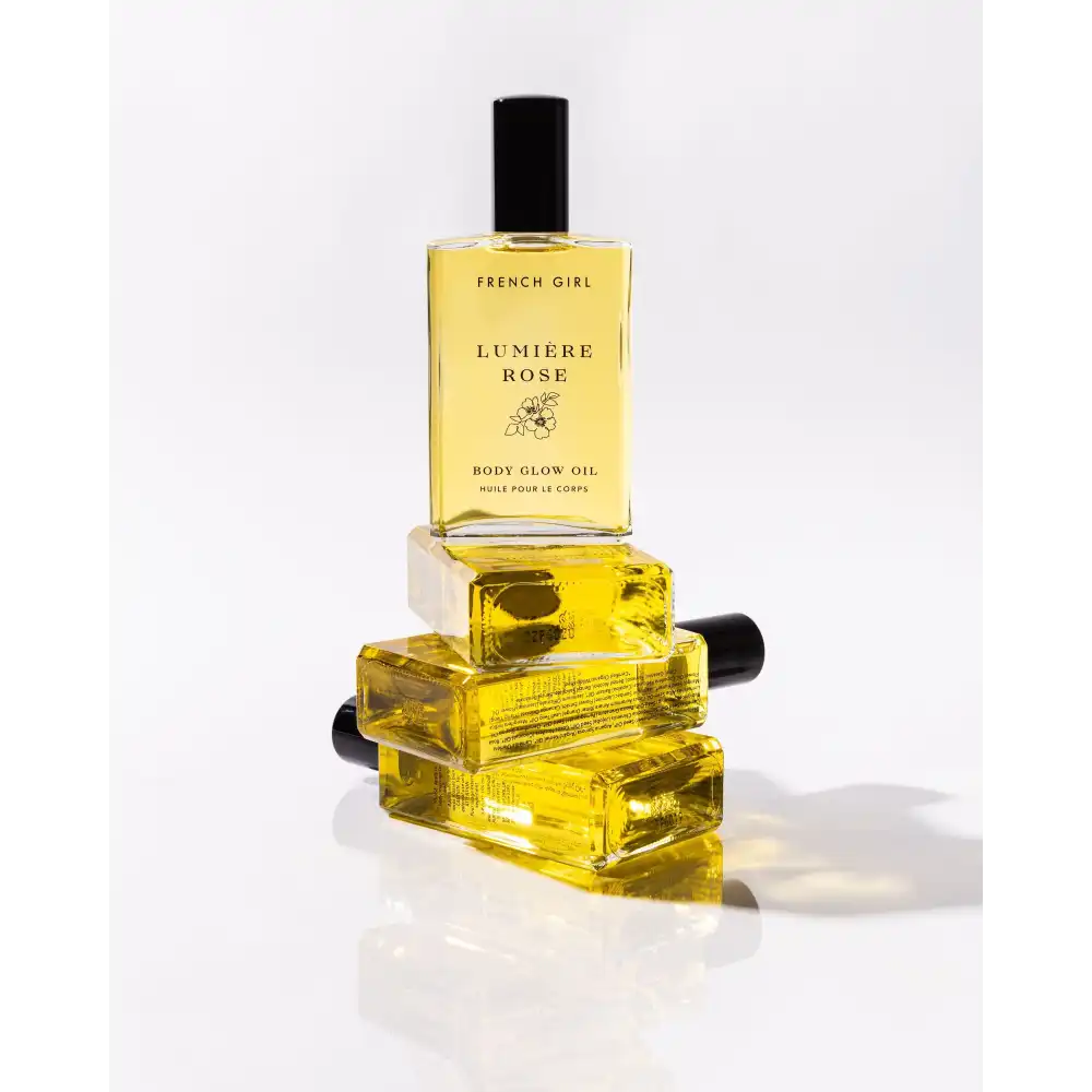 WHAT'S INSIDE: Experience the luxurious Lumière Rose Body Glow Oil from French Girl. This hydrating body oil blends nourishing organic oils for a lightweight, resilient and glowing feel to your skin. Indulge in the essence of French beauty with Lumière Body Glow Oil Rose. Made with organic oils, this lightweight and nourishing body oil will give your skin an effortlessly glowing and resilient look and feel. Treat your skin to a touch of luxury and revel in its radiant beauty.