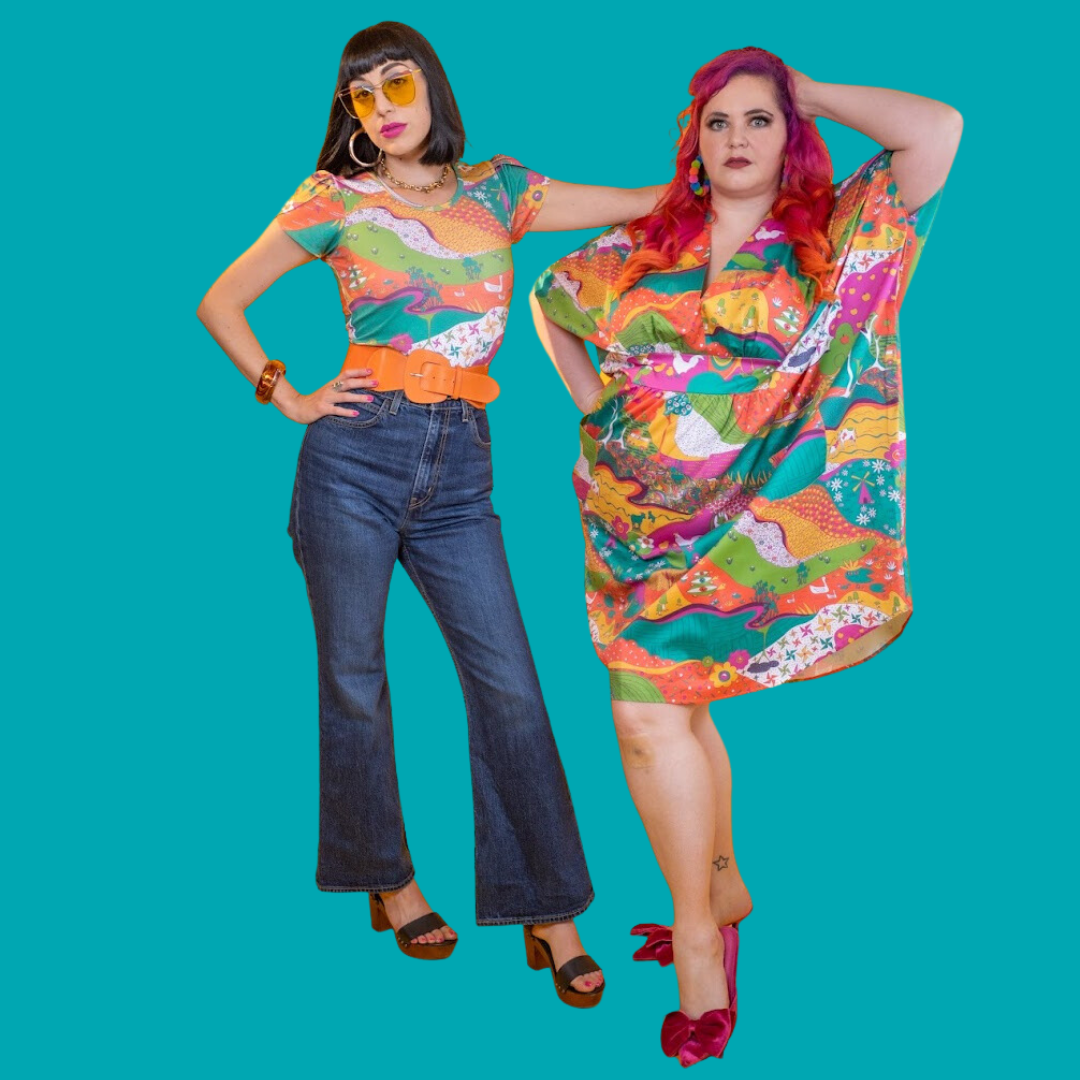 We are excited to introduce our original 70s-inspired landscape print bursting with animals, trees, and bright colors in brilliant emerald! This gorgeous & versatile cotton tee features our darling fruit print in ALL 9 SIZES in your favorite tulip-sleeved tee silhouette!