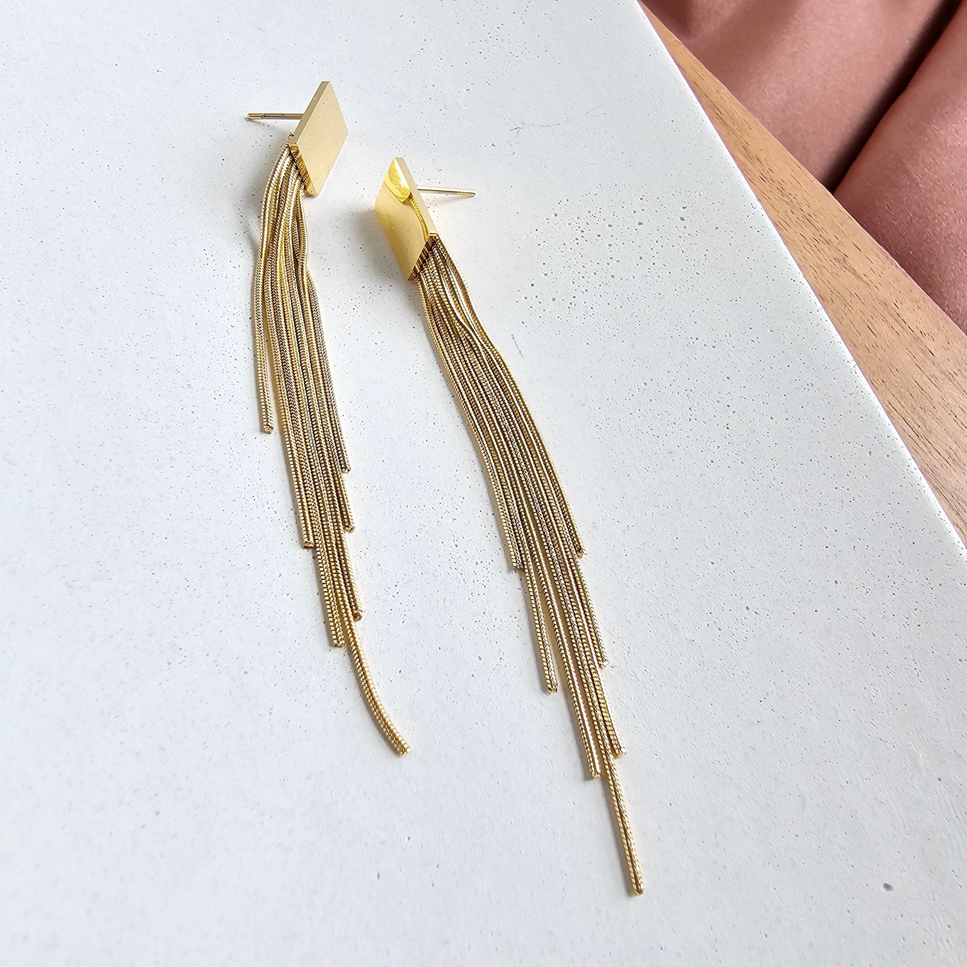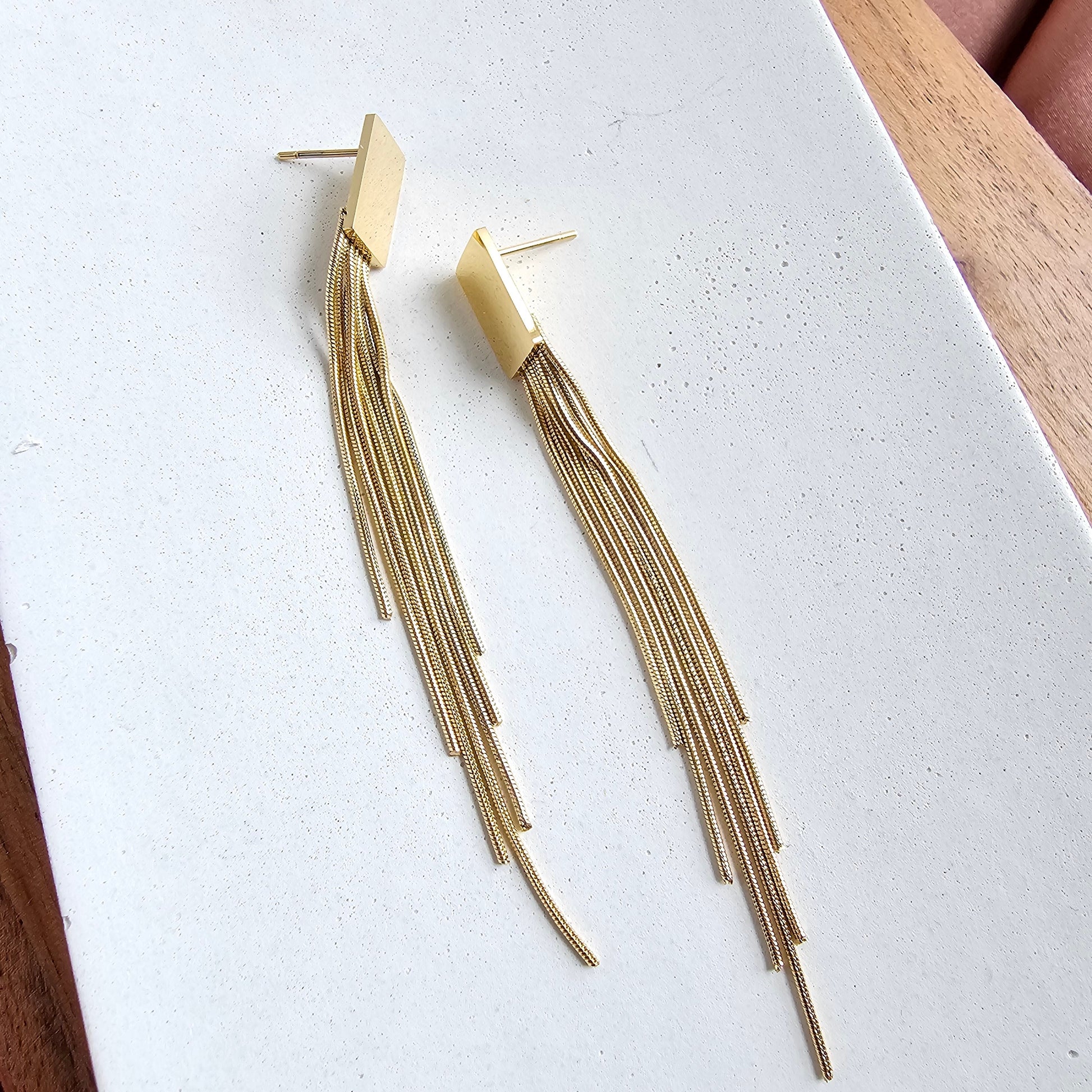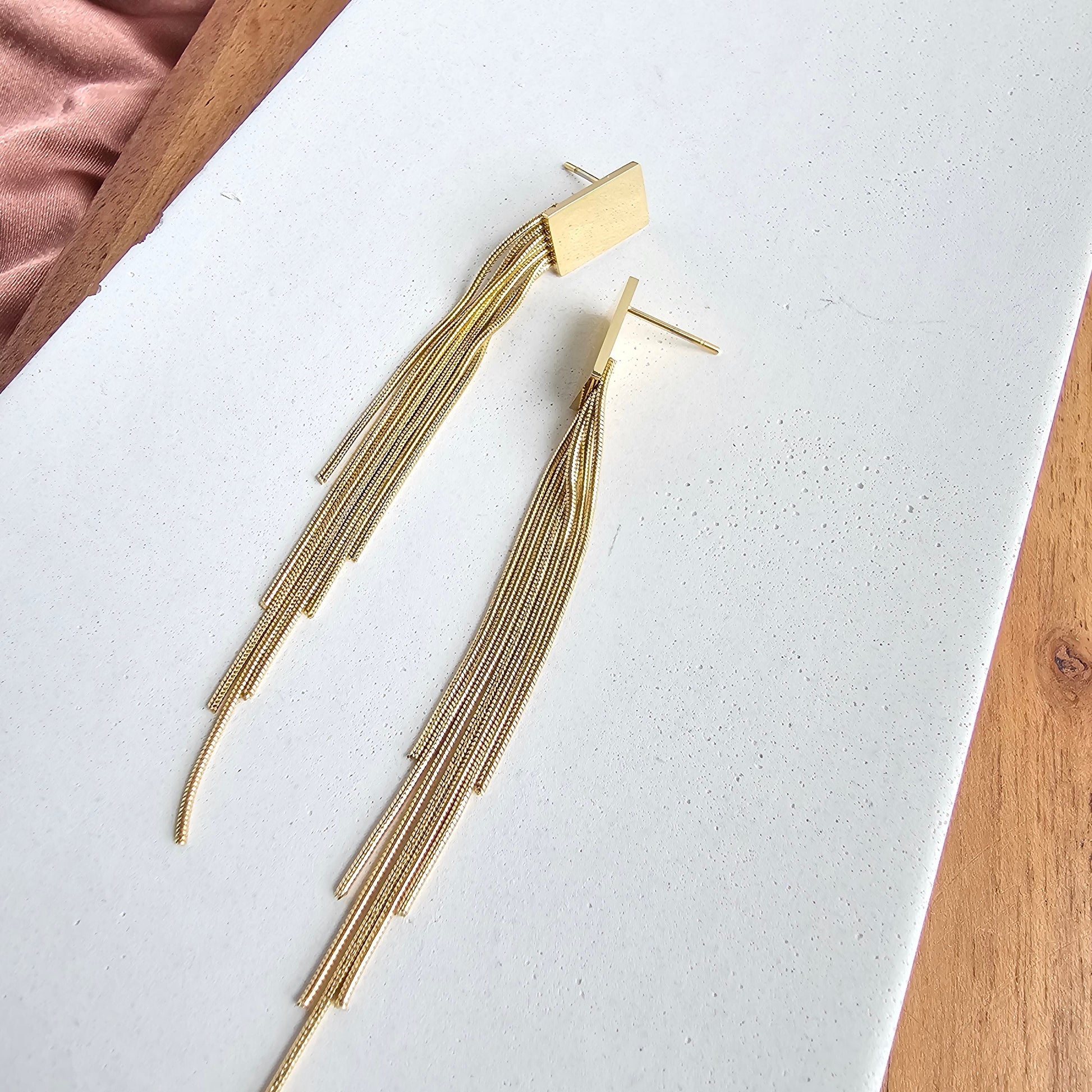 Our Tatiana Earrings, featuring a gold tassel dangle, are coming in hot, and they are going to be your new faves! They're ultra lightweight, so you can wear them all day and night without feeling weighed down – but trust us, they still pack a punch. You'll feel like you're walking down the runway every time you wear them. The playful tassel sways with every movement and adds just the right amount of flirtatious fun to your look.