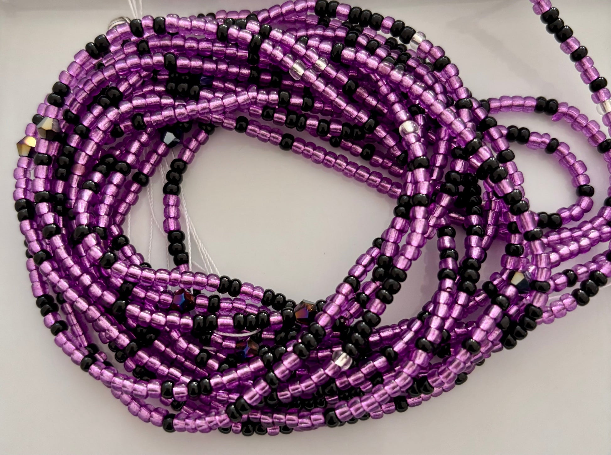 Elevate your style and embrace your feminine energy with these stunning black and purple waist beads.