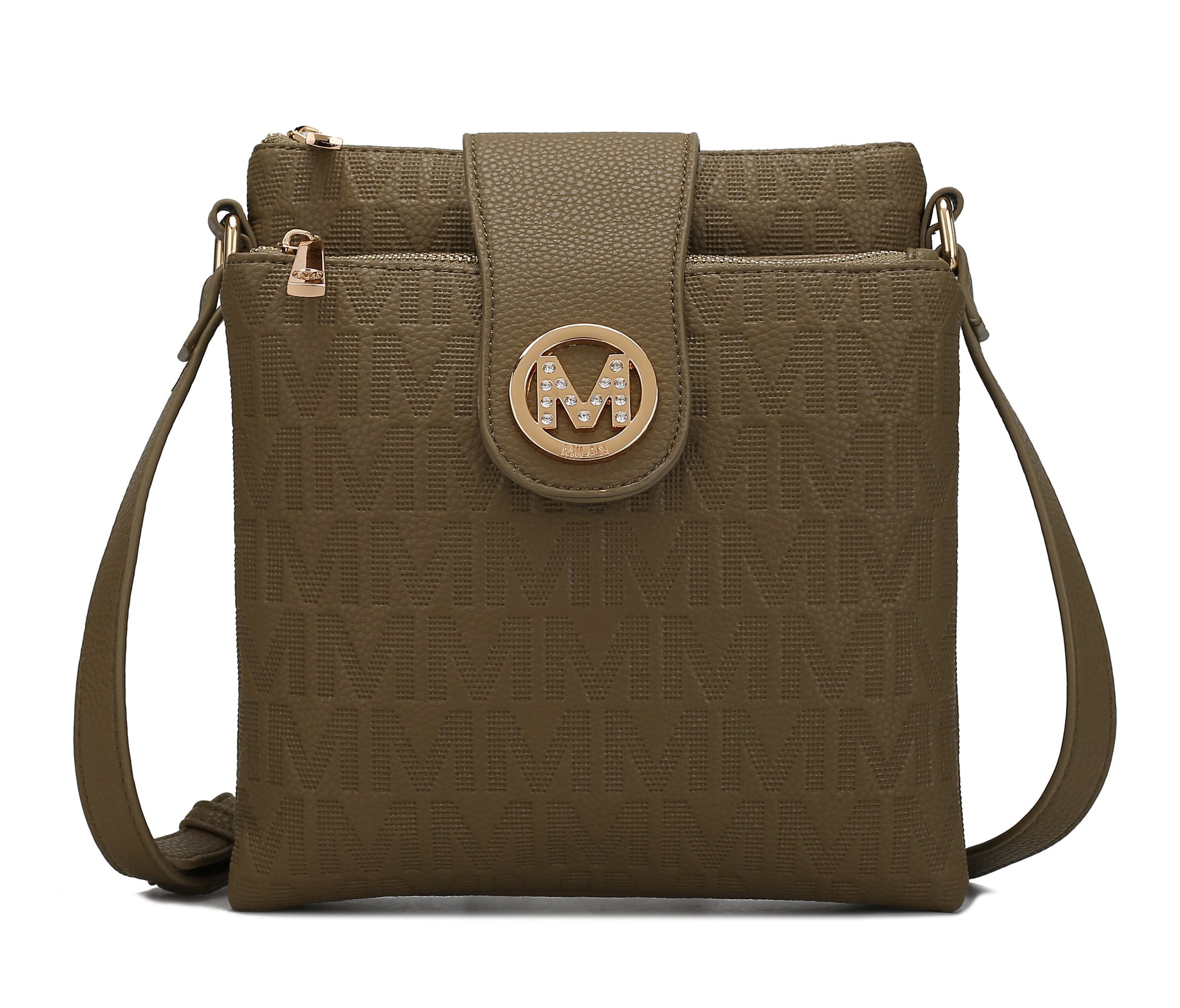 - The interior features two separate compartments; one compartment includes a wall-zippered pocket and the other is a spacious compartment