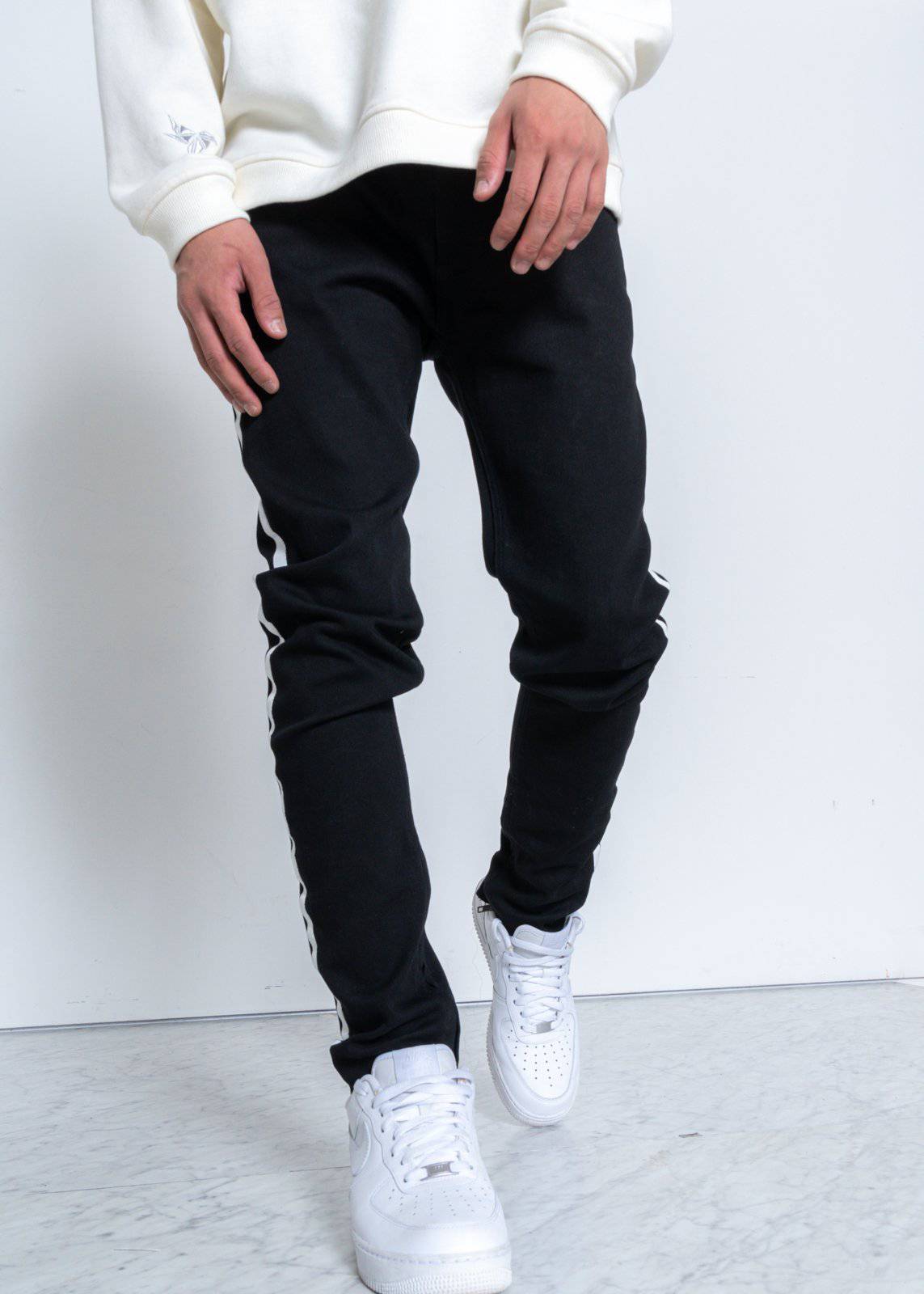 relaxed fit through the thigh that tapers from the knee to the ankle.