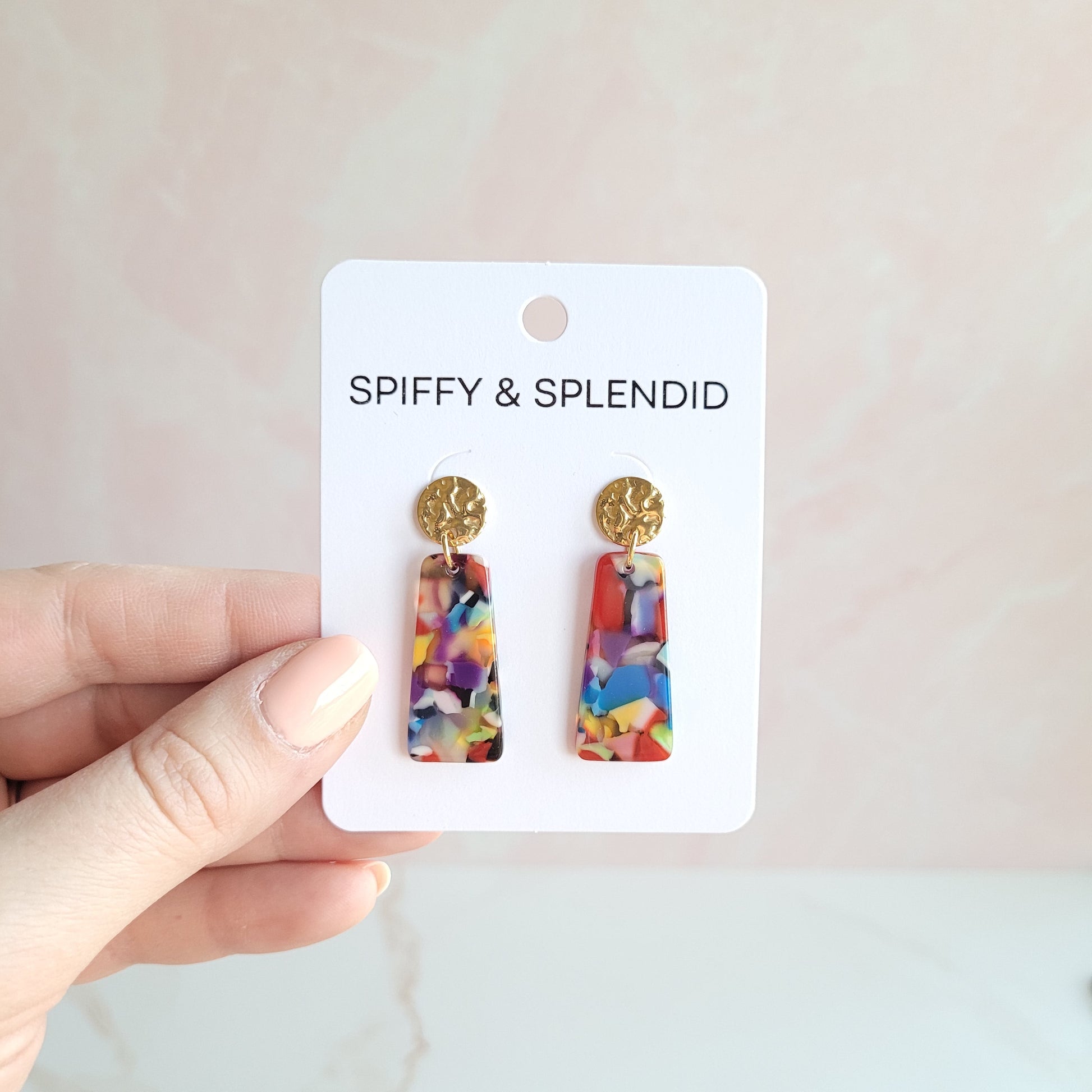Our Mia Mini Earrings feature a fun pop of color with gold stud accents. These dainty earrings make the perfect finishing touch to any outfit, while still being small and delicate enough to wear every day.