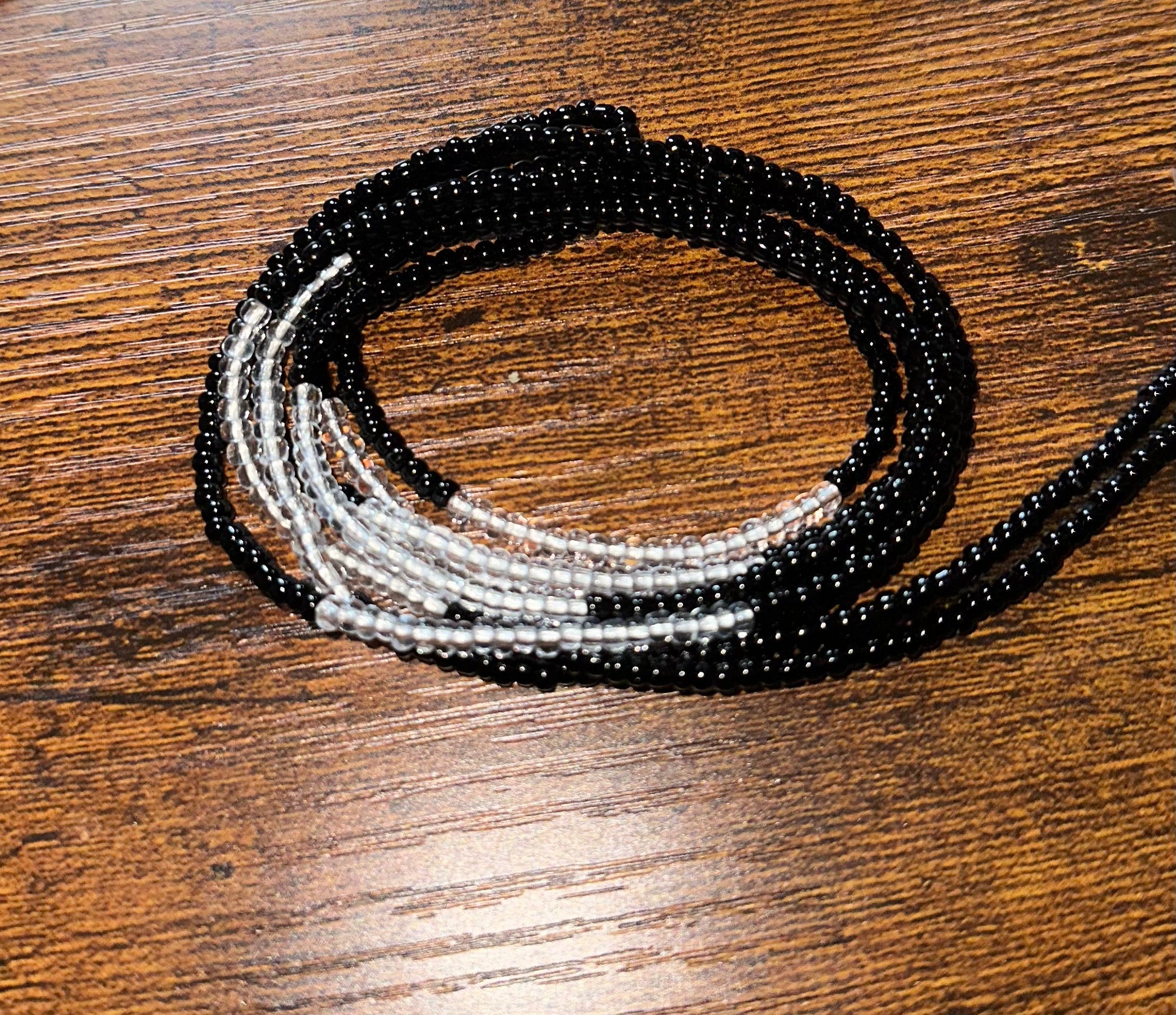 Bold, sleek, and effortlessly chic — Midnight Muse is for the woman who moves with quiet confidence and undeniable style. The mix of deep black and silvery glass beads gives it a timeless edge, perfect for both everyday wear and those nights you want to feel powerful and magnetic. Lightweight, smooth, and full of mystery — just like you.