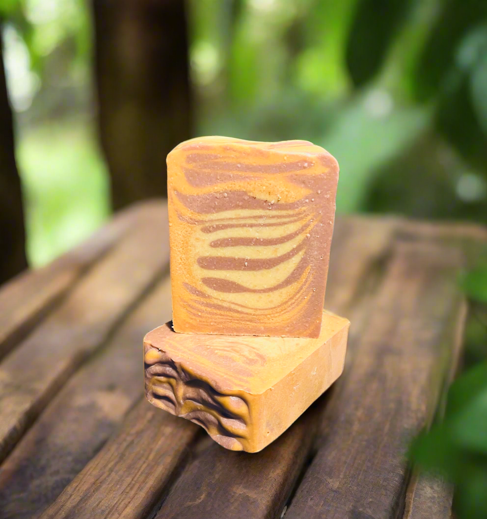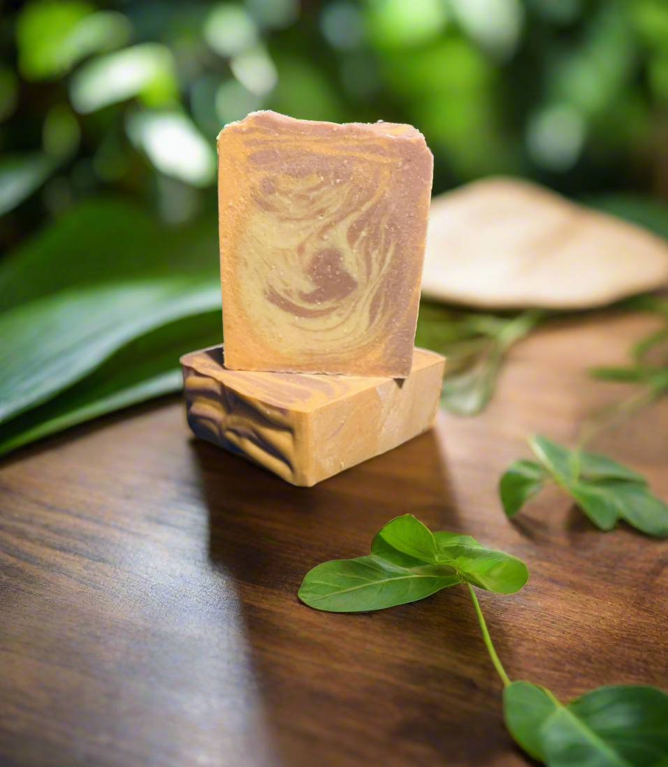 This Nag Champa Goat Milk Soap features a unique blend of incense, patchouli, sandalwood, and dragon's blood, creating a delightful aroma.