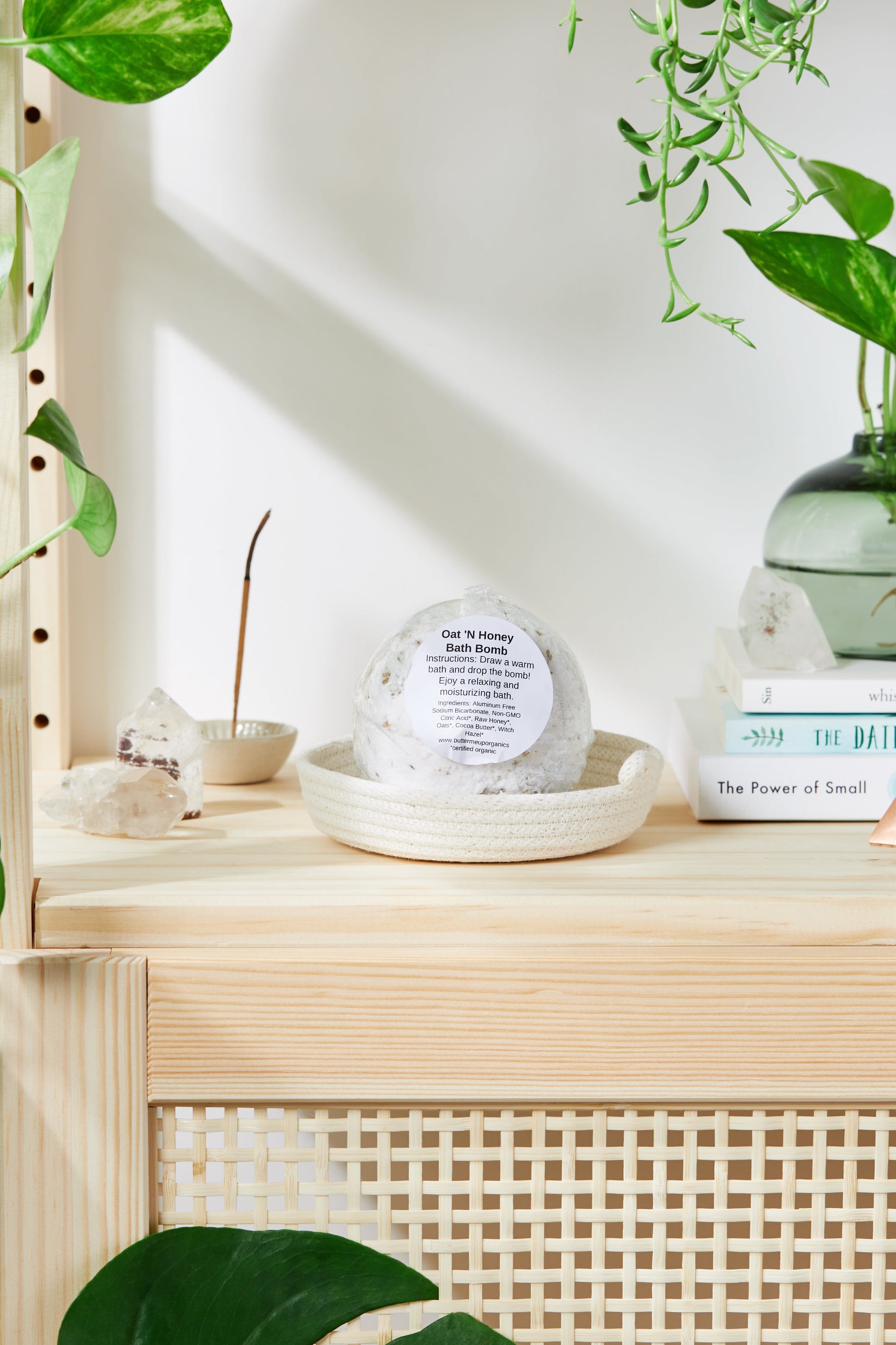 This extra-large organic bath bomb is a wonderful treat for your skin! With ultra-moisturizing cocoa butter, skin-soothing honey and ground oats, your skin is sure to thank you. Oatmeal is not only hydrating for your skin, but cleansing and is known for curing skin diseases such as eczema as well. So if you have tired or irritated skin or just feel like a little pampering, this is the bomb for you!
