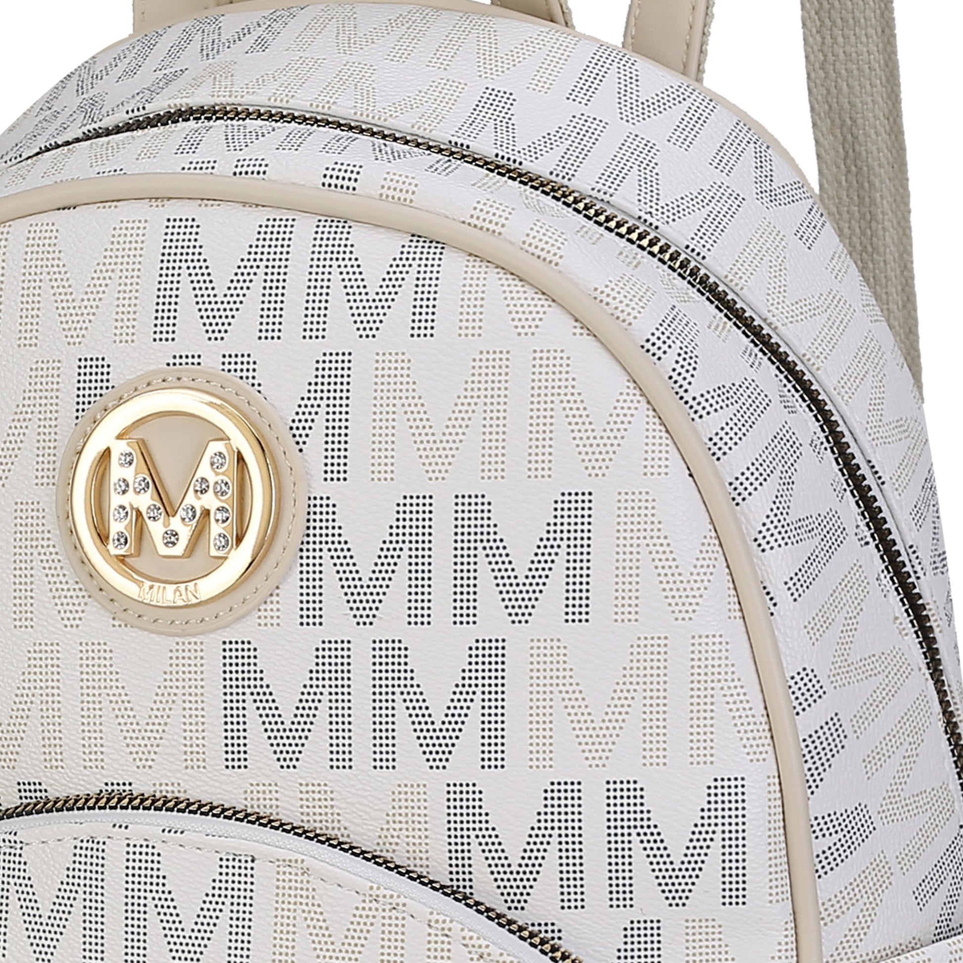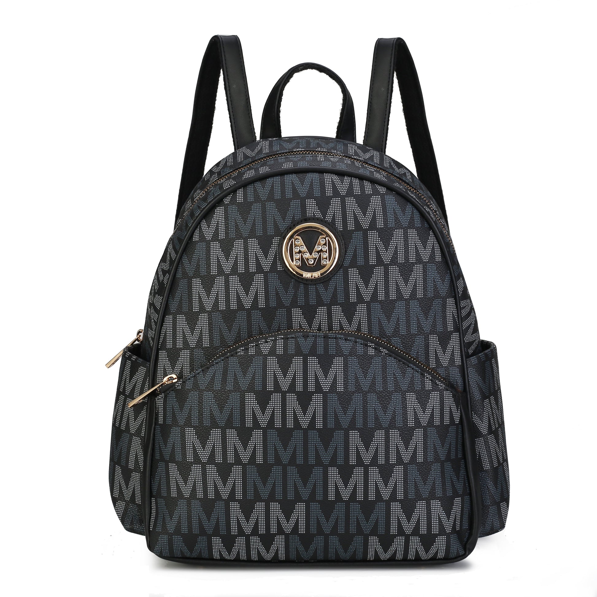 - Exterior details: a front zippered pocket and a side pocket on each side
