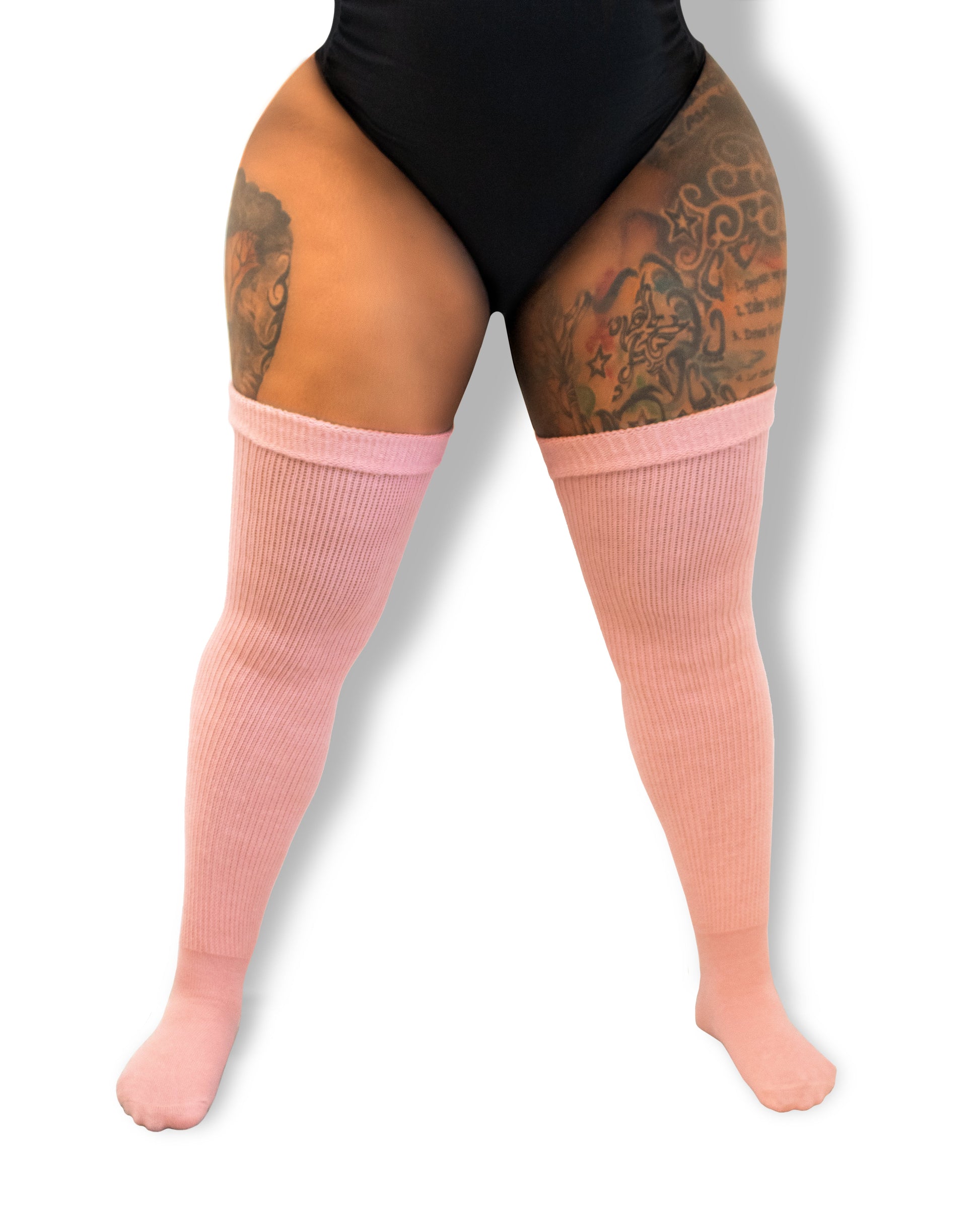 Embrace Your Style: Our Peppermint Pink Plus Size Thigh-Highs are more than just socks; they're a statement of confidence, a nod to your unique style, and a comfort to wear. Add them to your collection today and step out in style, supported by our innovative thigh belts that keep everything exactly where it should be. Because at Thick Thigh Tribe, we believe beauty knows no size, and gravity truly does suck—but we've got you covered.