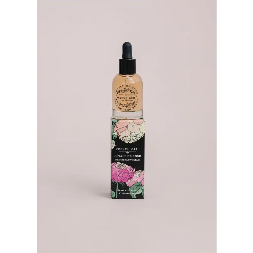 WHAT'S INSIDE: French Girl Peptide Glow Serum is a magical blend of powerful & effective botanical extracts and peptides focused on increasing skin hydration, smoothness, and clarity. Experience the wonders of Mother Nature with French Girl Peptide Glow Serum. Our unique blend of potent botanical extracts and peptides works wonders on your skin, leaving it feeling hydrated, smooth, and clear. Discover the transformative benefits of this luxurious serum that is sure to elevate your skincare routine.