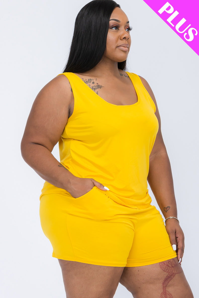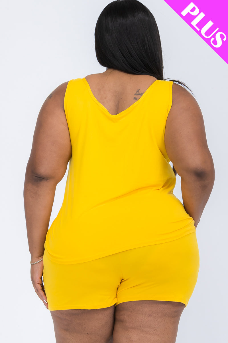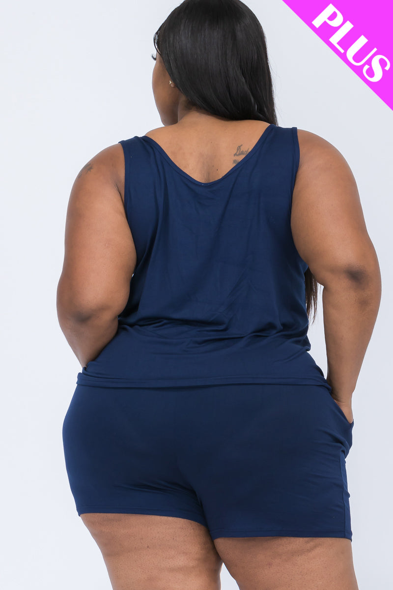 Designed with curvy figures in mind, this plus-size tank top and shorts set offers the ultimate combination of comfort and style. The breathable, lightweight fabric drapes beautifully, while the relaxed-fit tank and elastic-waist shorts ensure an effortless and flattering fit.