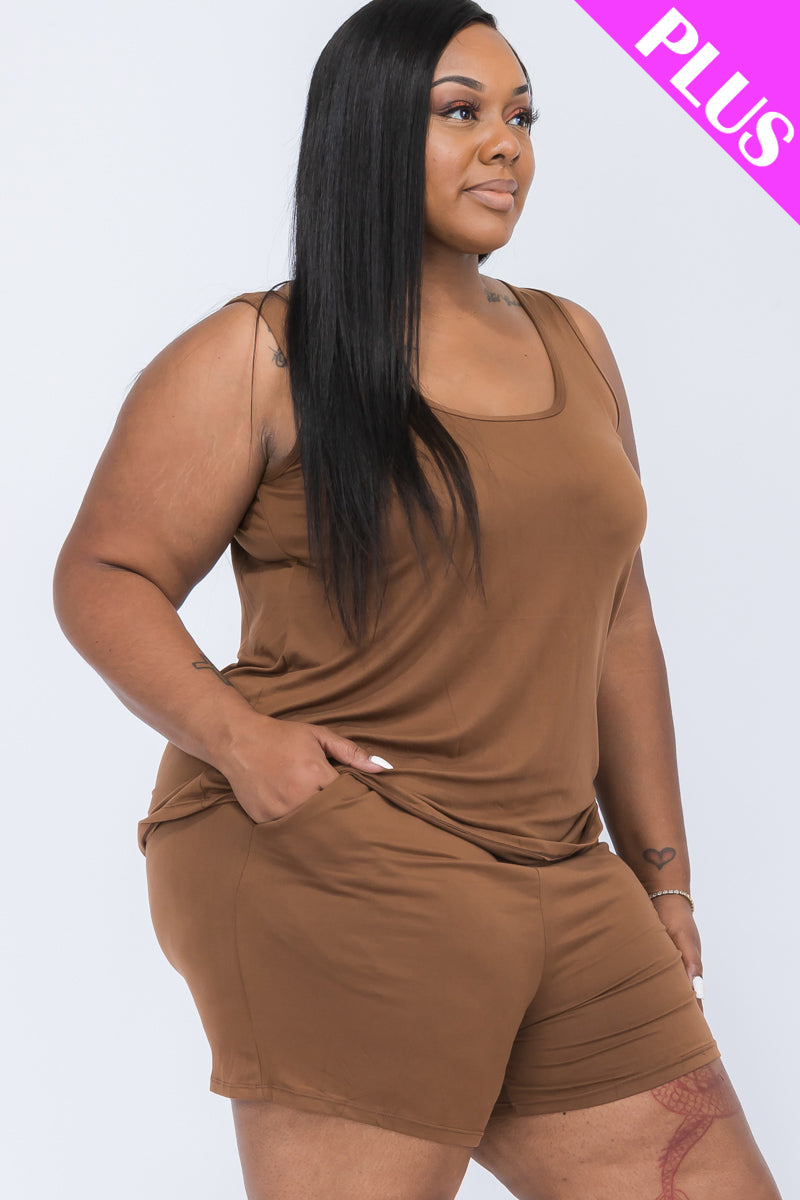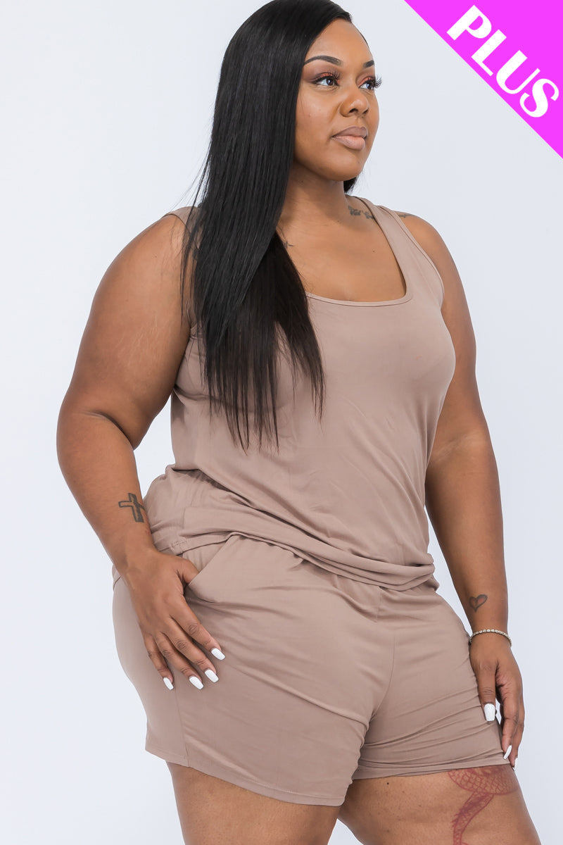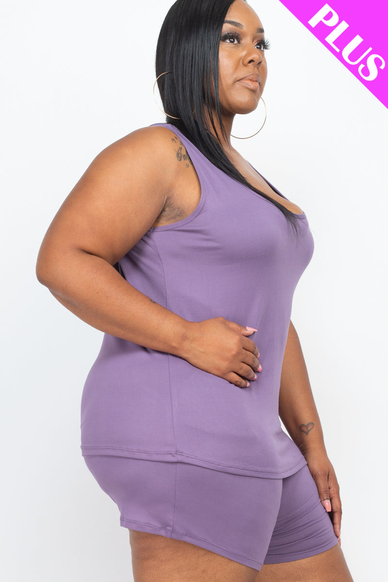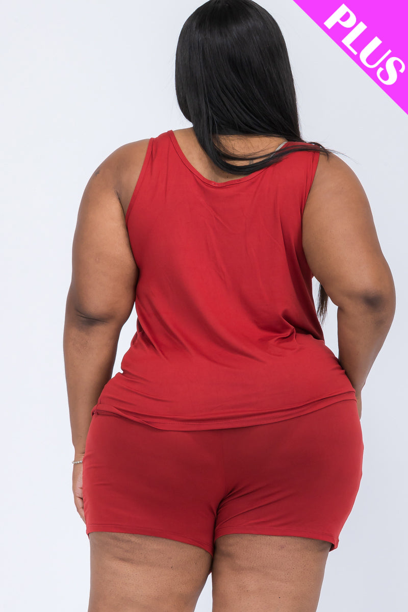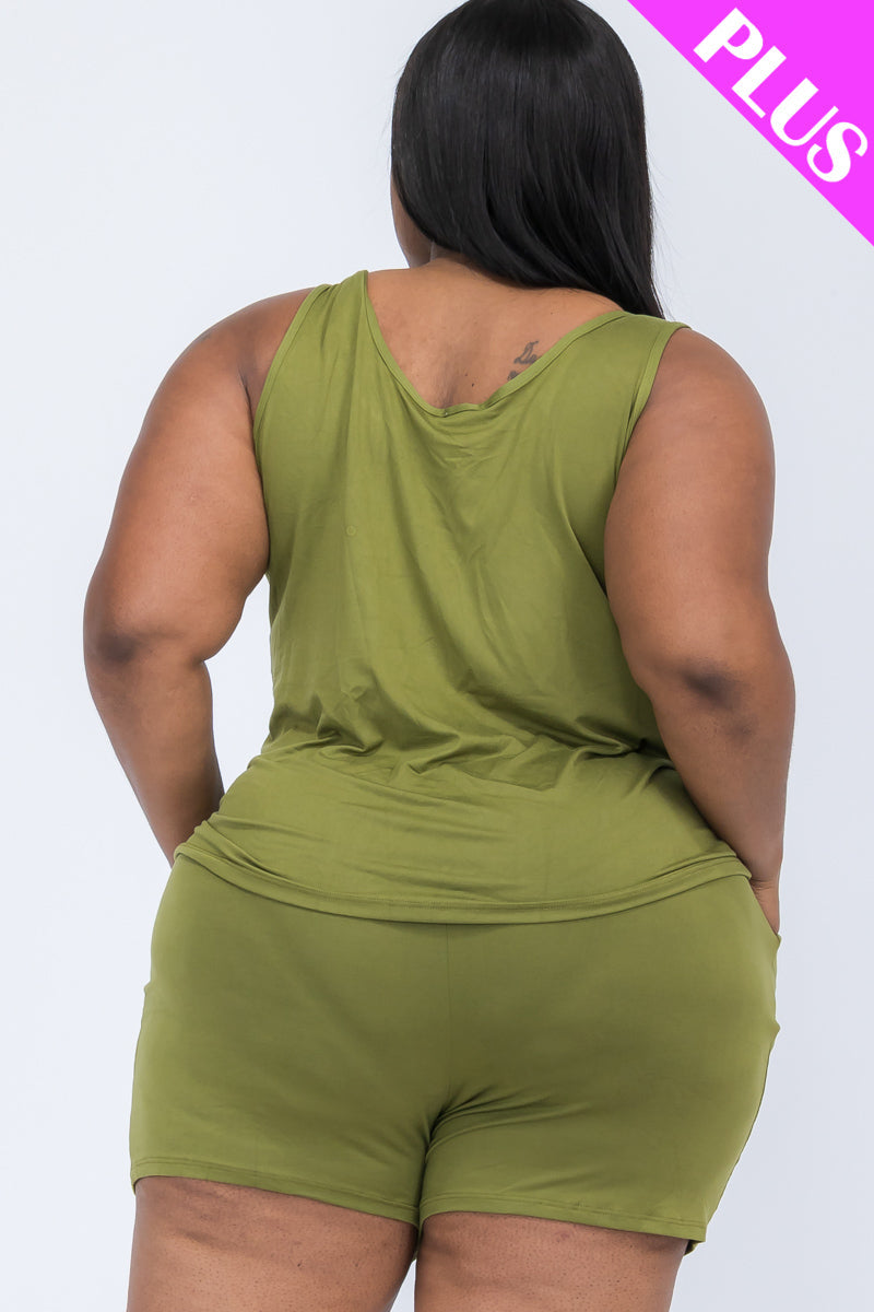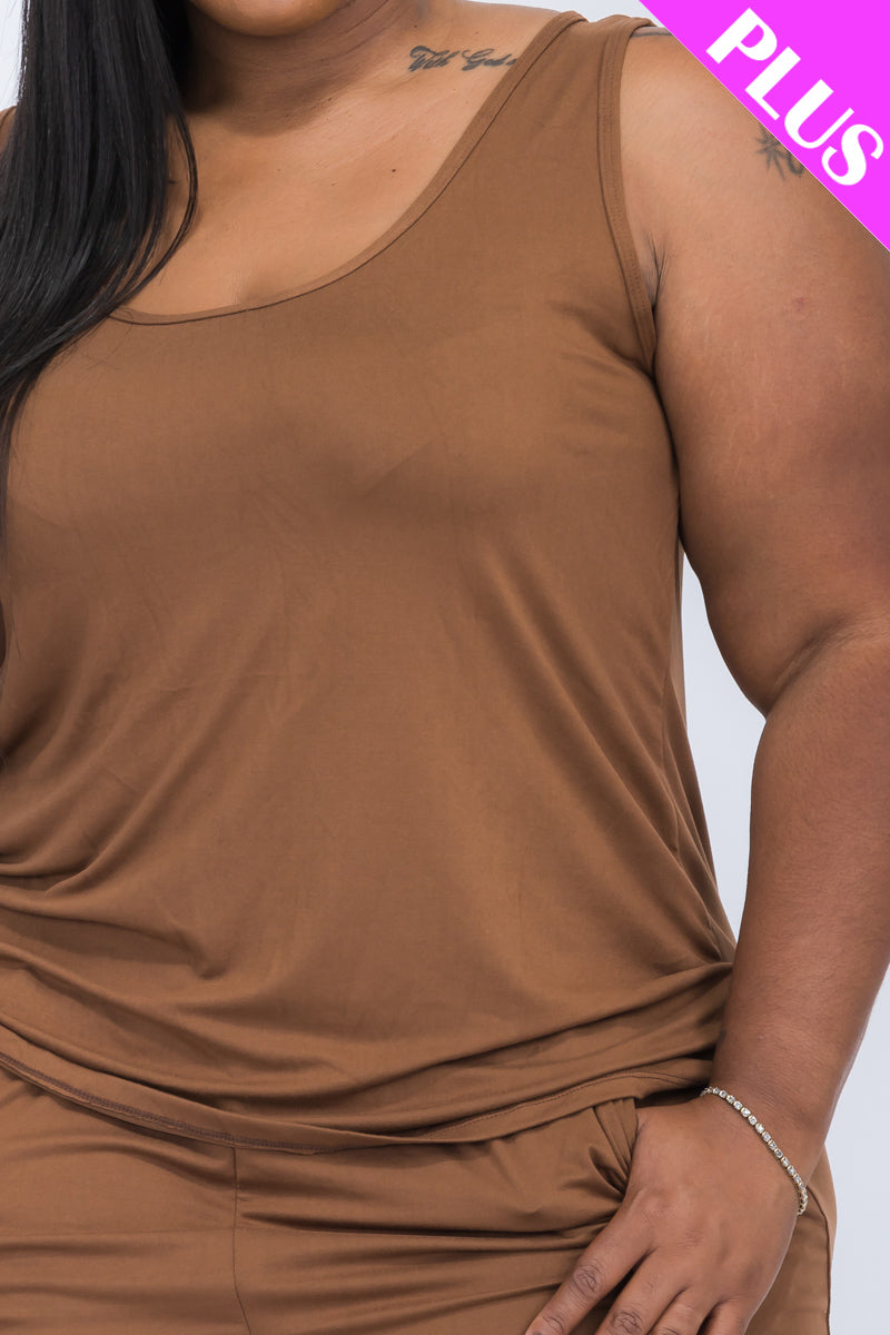 plus-size lounge set, comfy tank top, plus-size summer outfit, relaxed fit two-piece, soft loungewear, casual plus-size set, everyday comfort wear