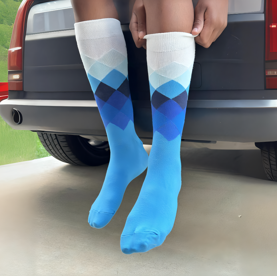 Blue done right. Prestige Azure’s gradient argyle fades from light to bold, making every step sleek and stylish.