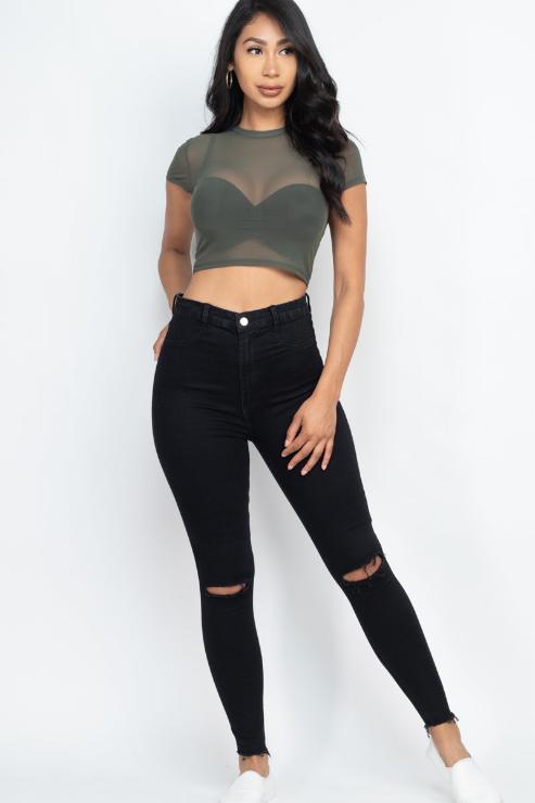 sheer crop top, mesh crop top, sexy short sleeve top, fitted crop top, statement fashion, layering top, clubwear, trendy mesh top