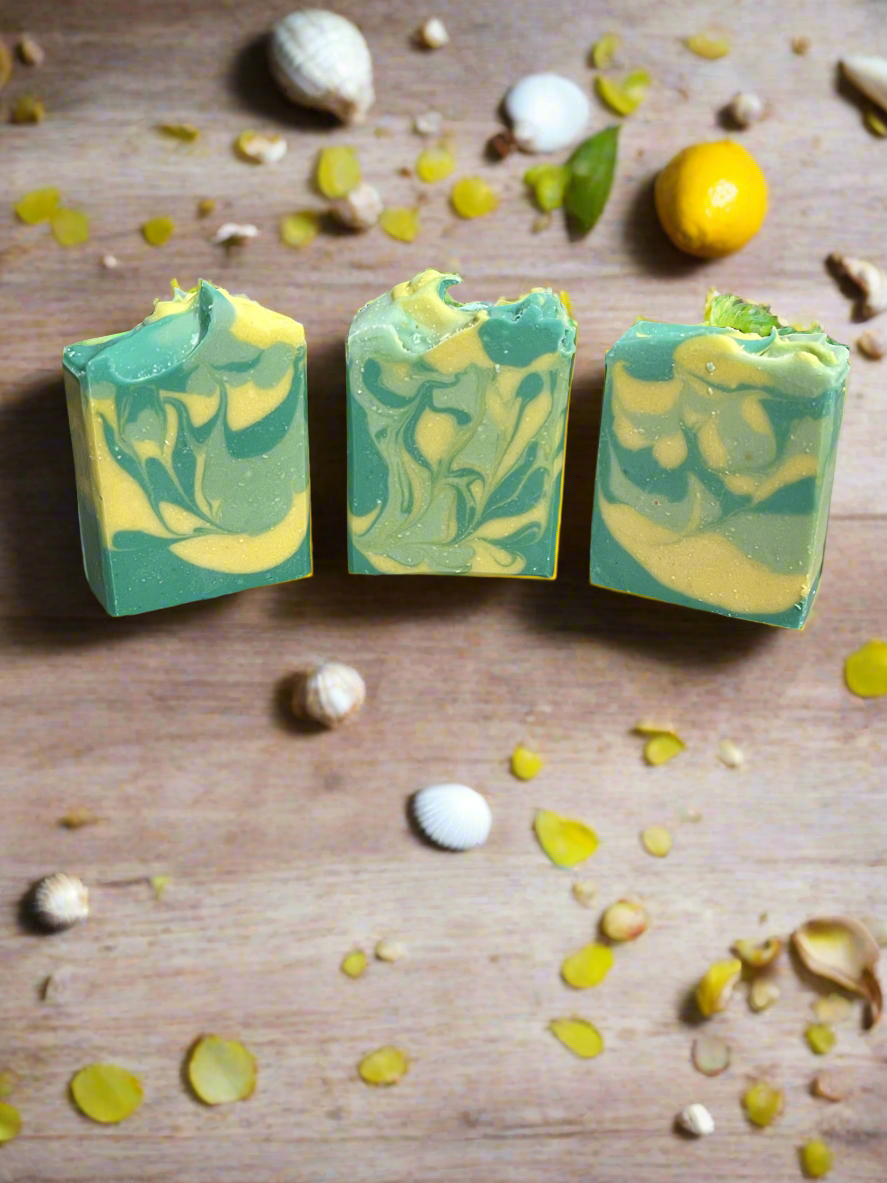 Transport yourself to the sun-drenched coast of southern Italy with Sicilian Sea Breeze, a refreshing goat milk soap inspired by the crisp air and vibrant citrus groves of the Mediterranean.