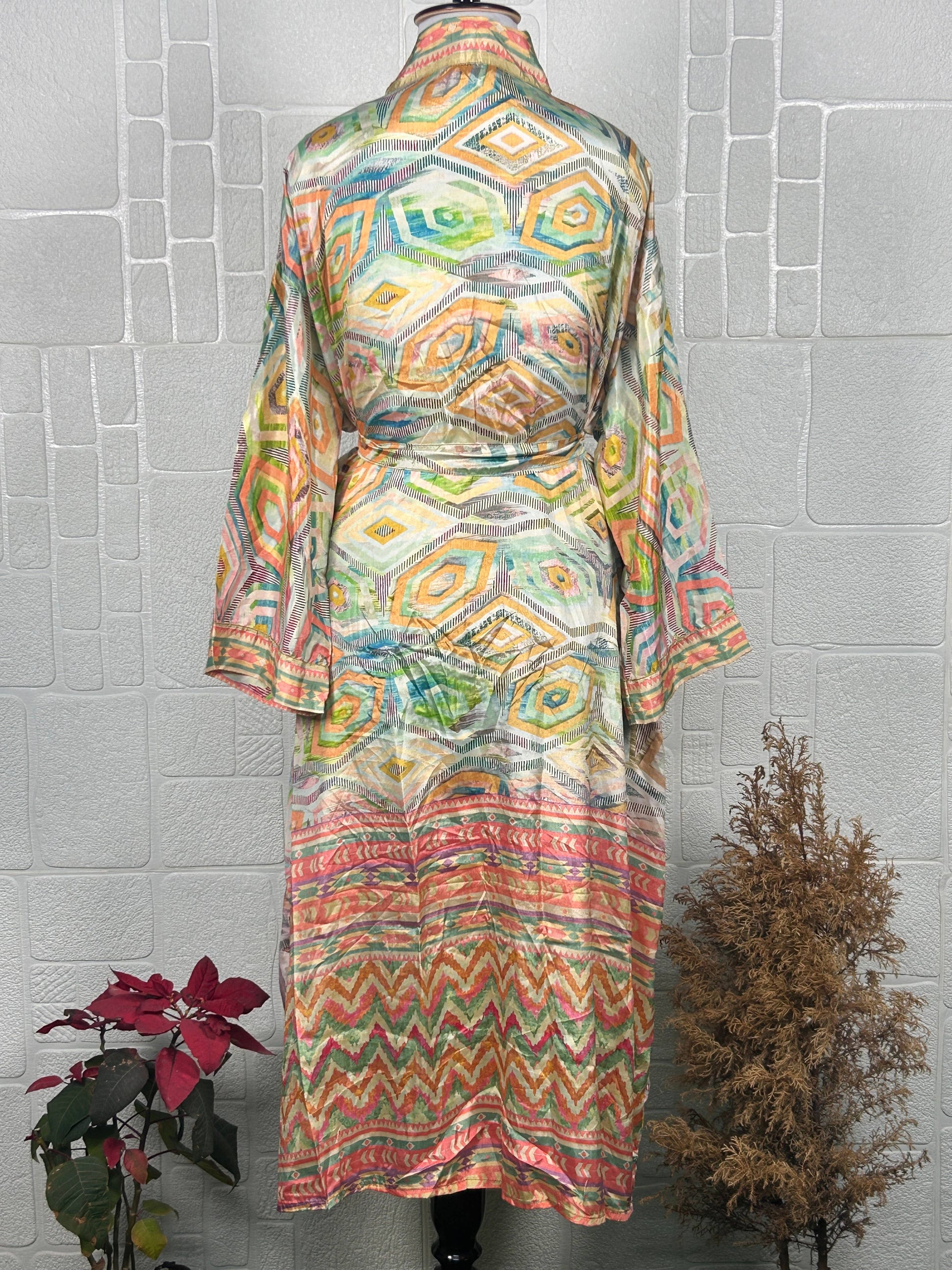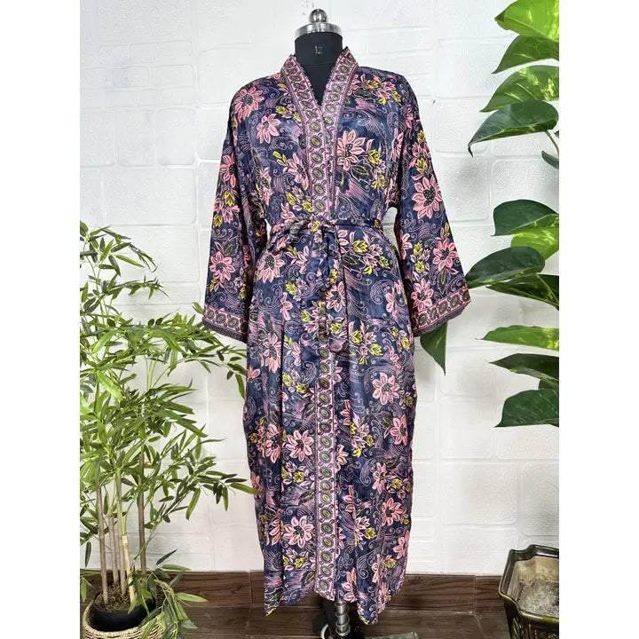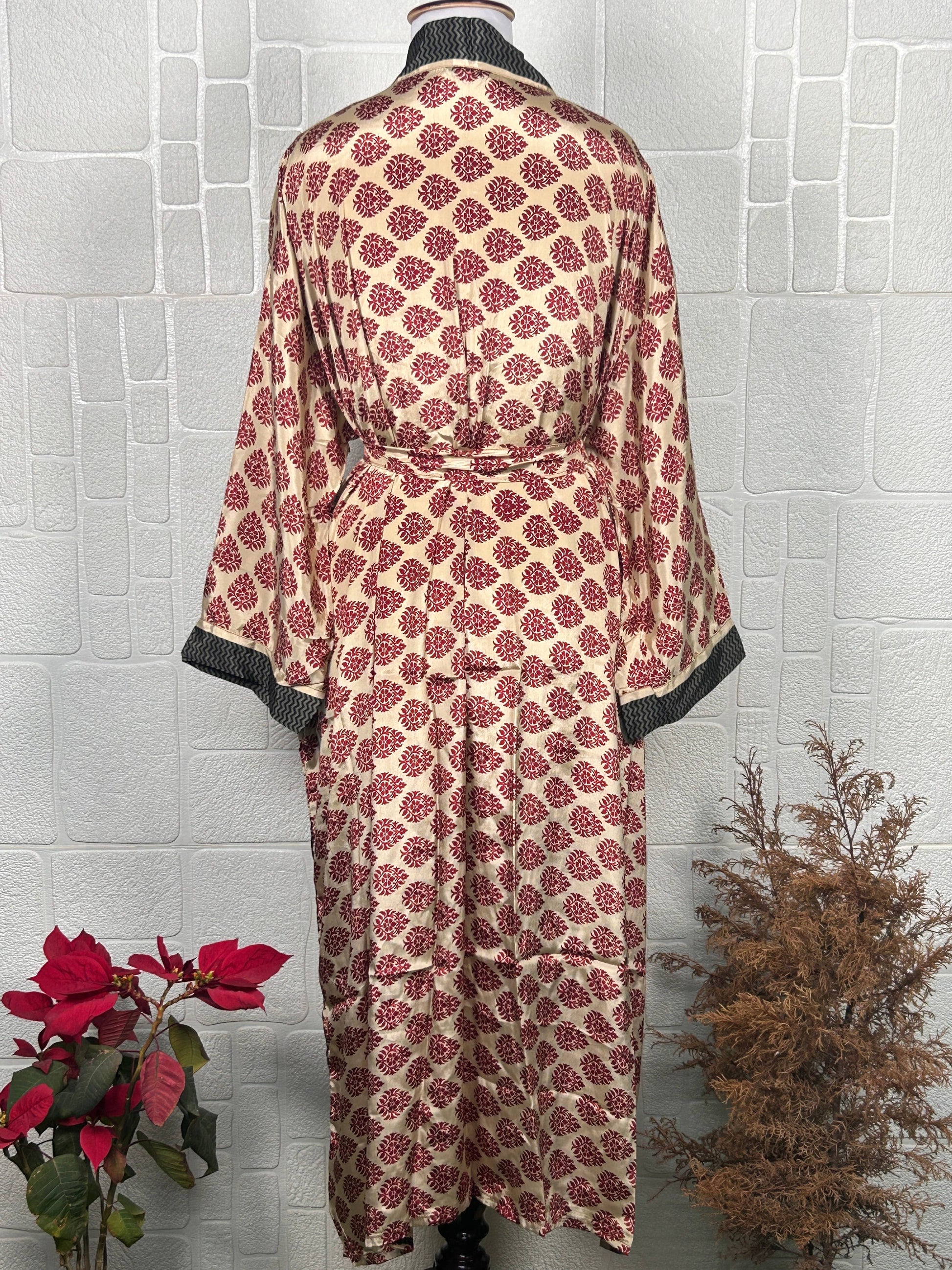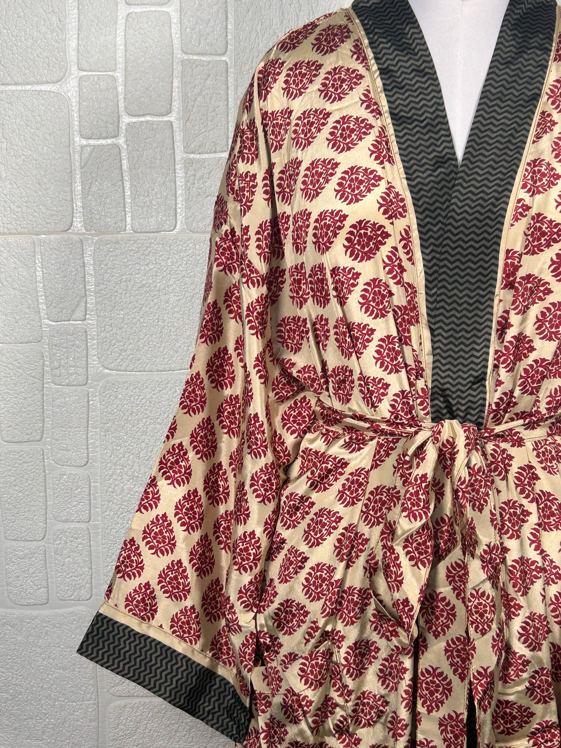 This beautiful robe is crafted by hand and is made from high-quality new silk sari’s. Almost weightless, stylish, and very urban that creates a flowing motion with every movement. Perfect for lounging. Very luxurious to touch :) A heavenly touch for cozy evenings in: this luxurious robe is crafted with love and care, creating an elegant effect with each step. Slip in and experience bliss! Let the night take you away.