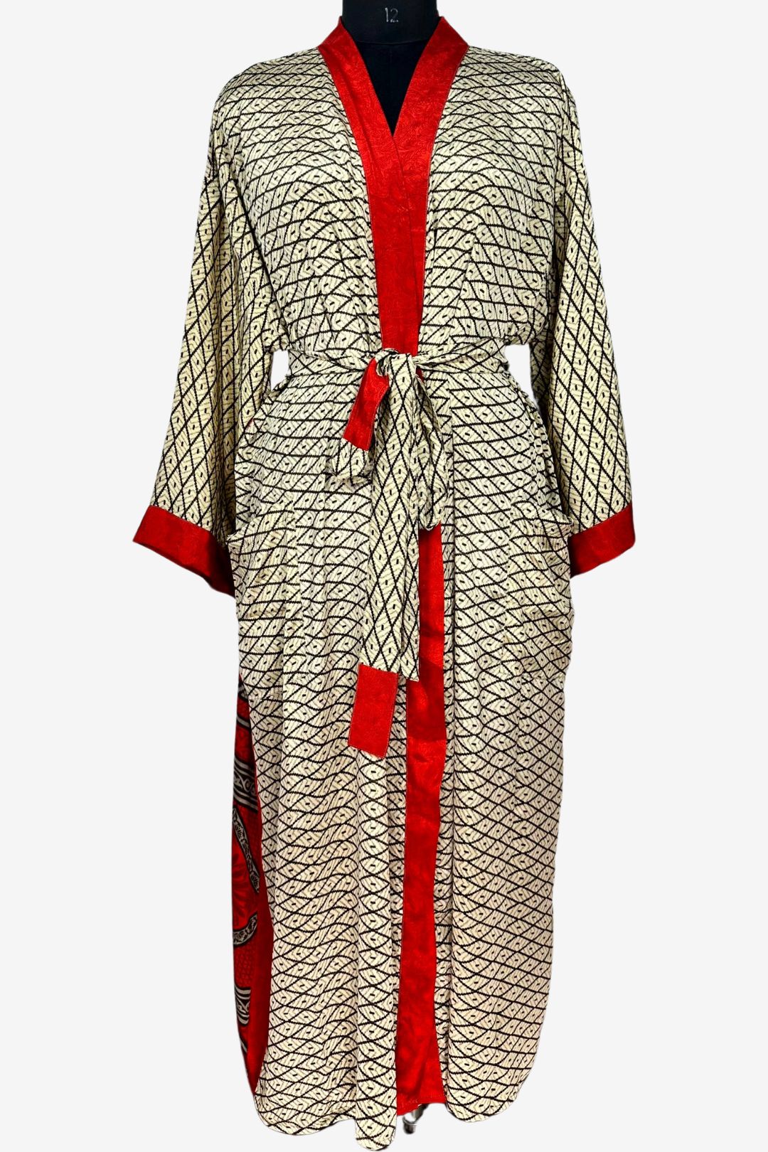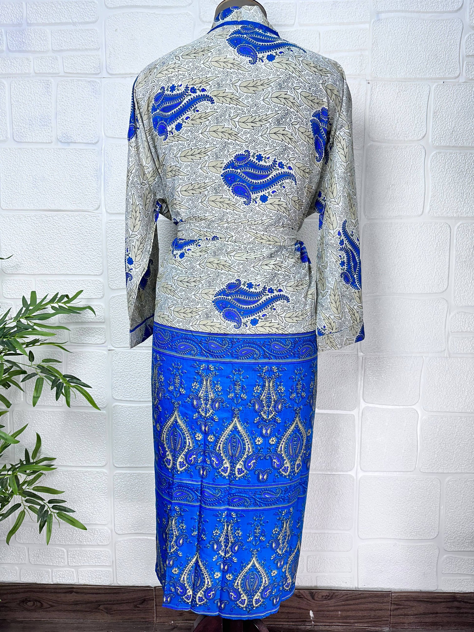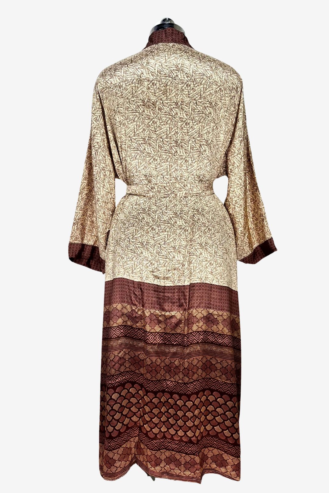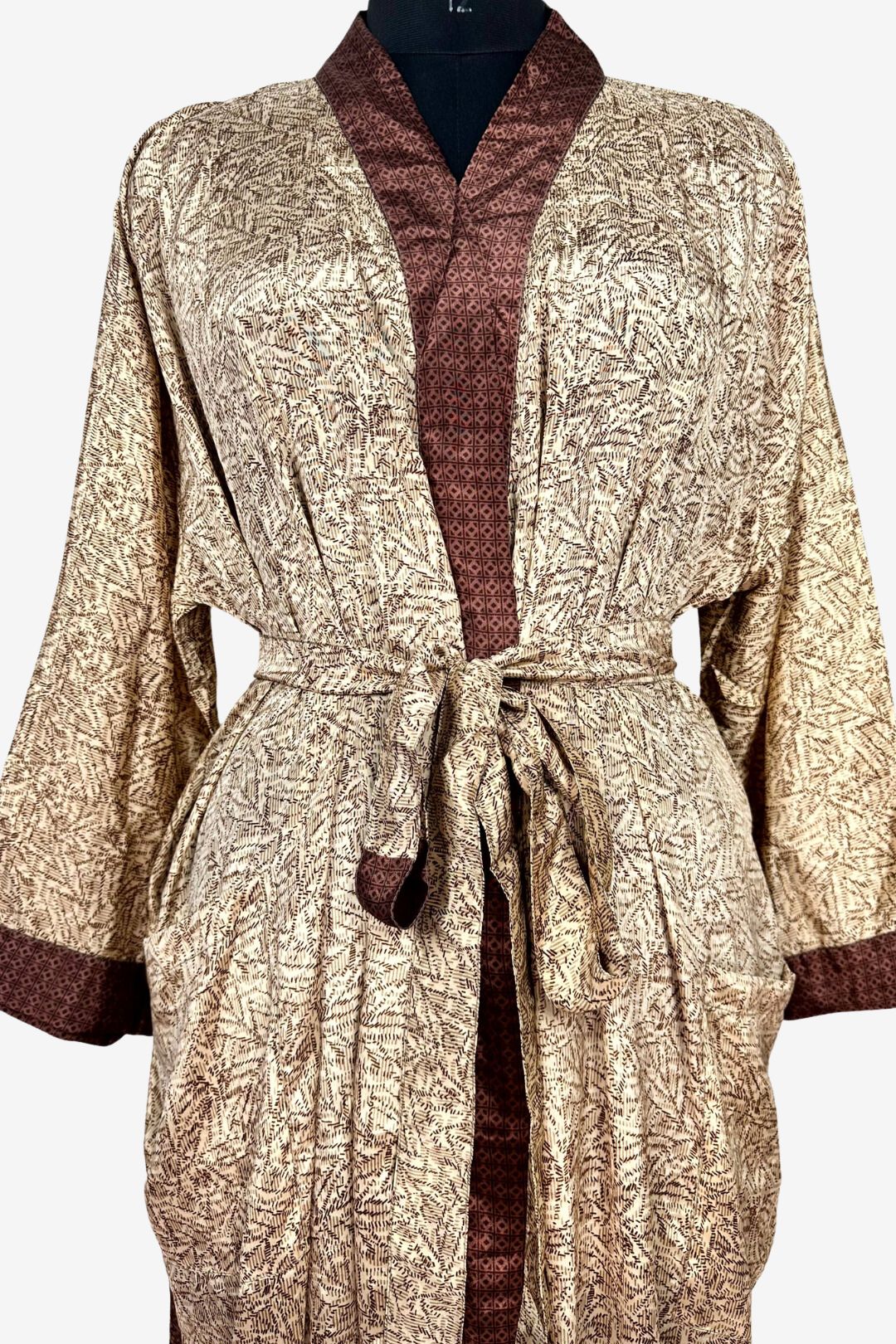 This beautiful robe is crafted by hand and is made from high-quality new silk sari’s. Almost weightless, stylish, and very urban that creates a flowing motion with every movement. Perfect for lounging. Very luxurious to touch :) A heavenly touch for cozy evenings in: this luxurious robe is crafted with love and care, creating an elegant effect with each step. Slip in and experience bliss! Let the night take you away.