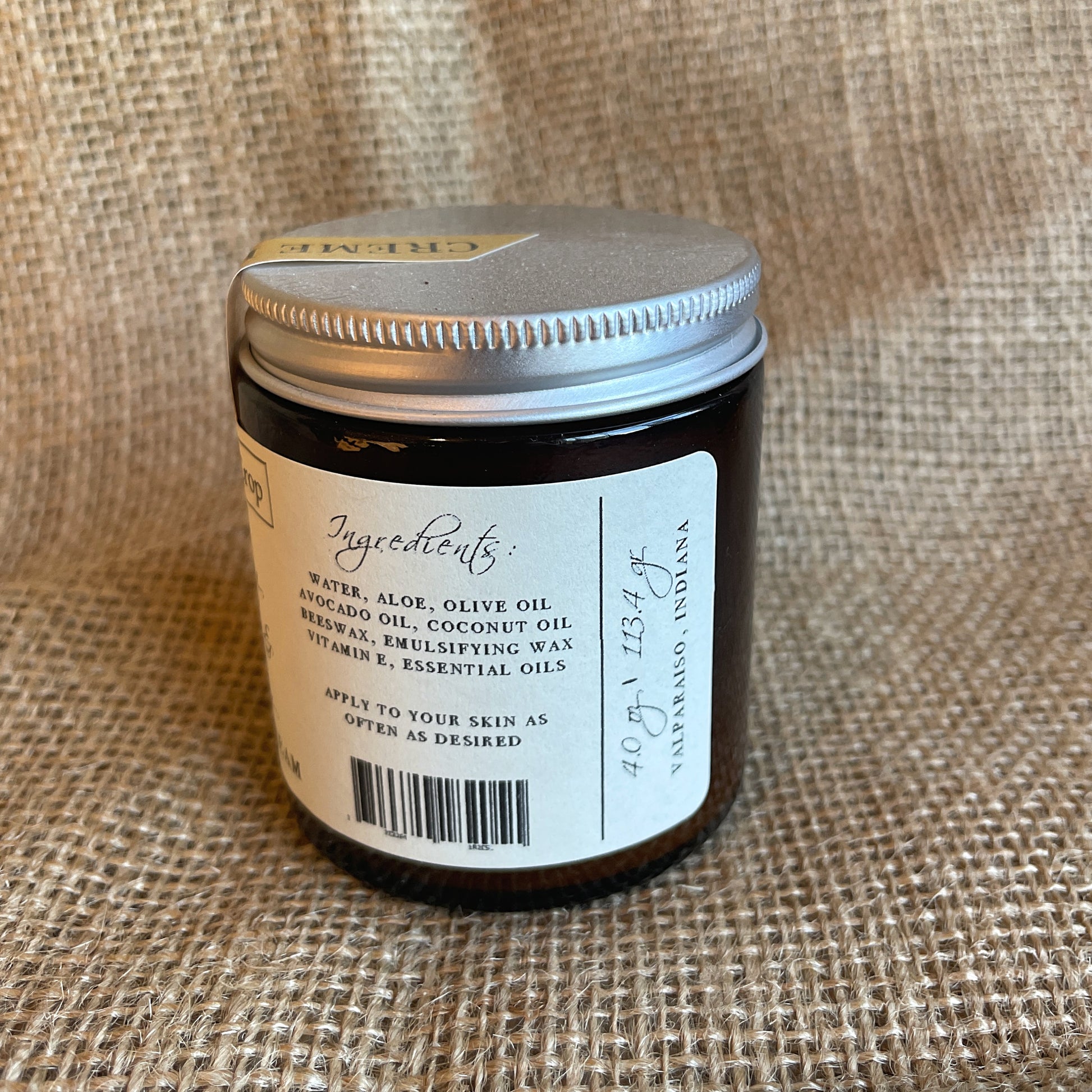 Ingredients: Water, Aloe, Avocado Oil, Coconut Oil, Emulsifying Wax, Beeswax, Vitamin E Oil, Optiphen, and Essential Oils, including Tea Tree, Peppermint, and Eucalyptus