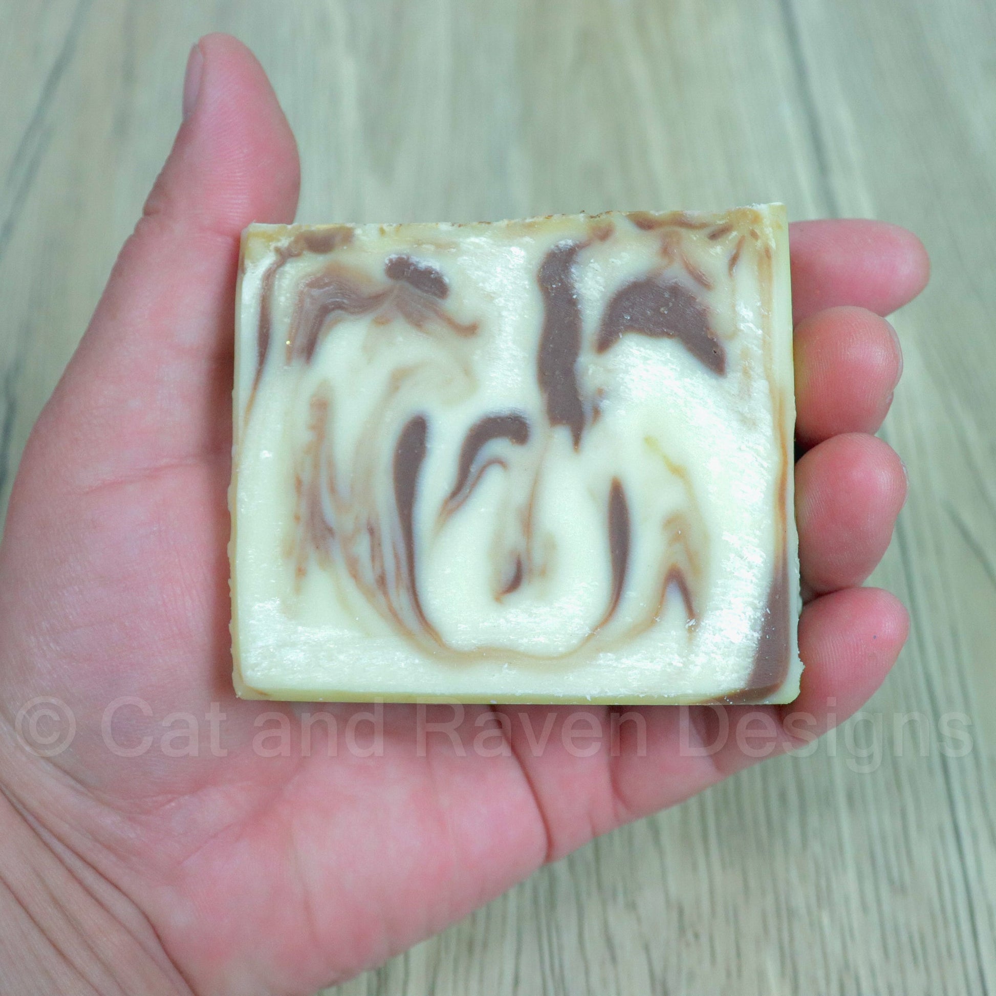 Ingredients: olive oil, cocoa butter, sodium hydroxide, kaolin clay, and cocoa powder.