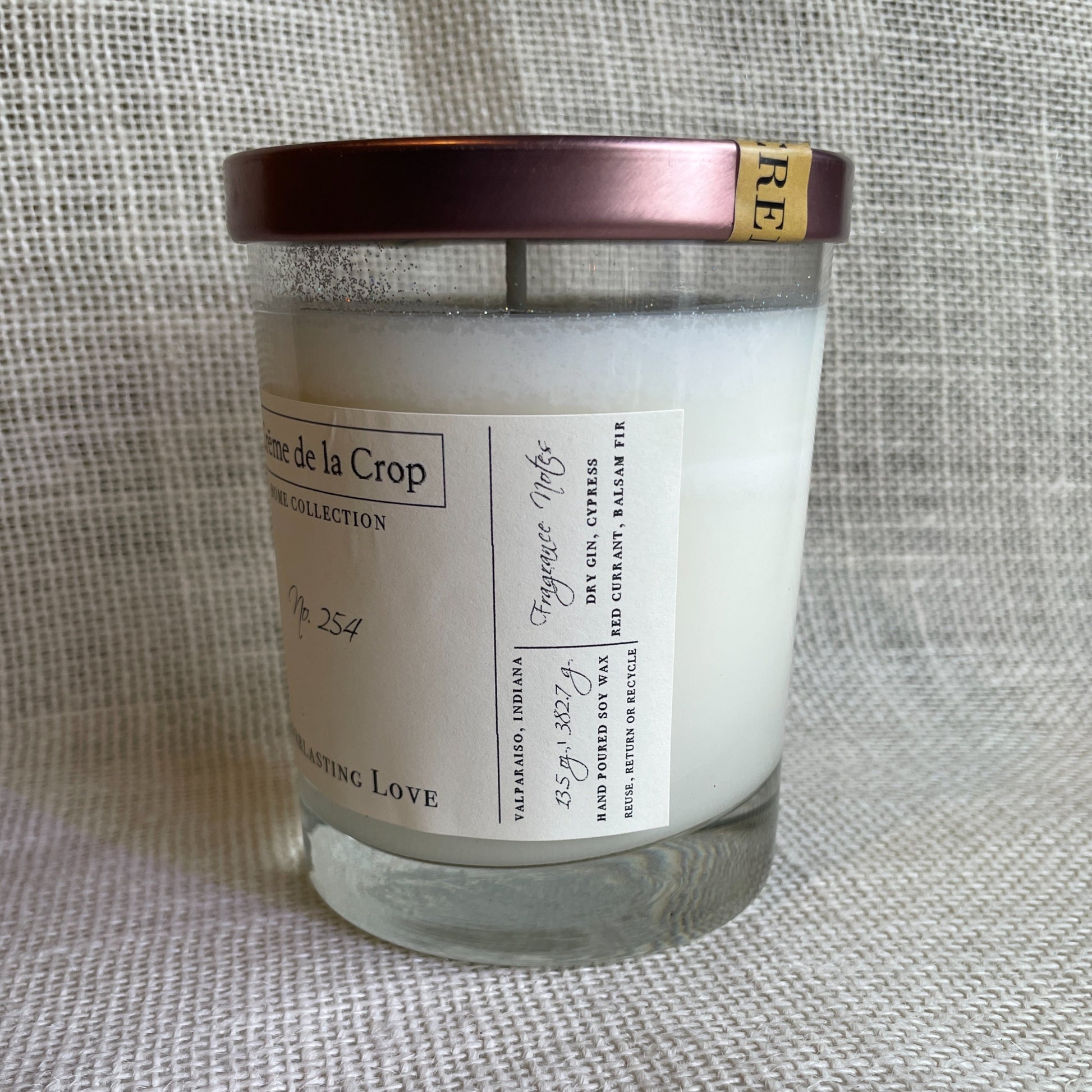 Everlasting love is something we all search for, and is a love that some have found. This candle speaks to the freshness, openness, and sweetness that love provides. It features an inviting blend of Dry Gin, Cypress, Red Current, and Balsam Fir.