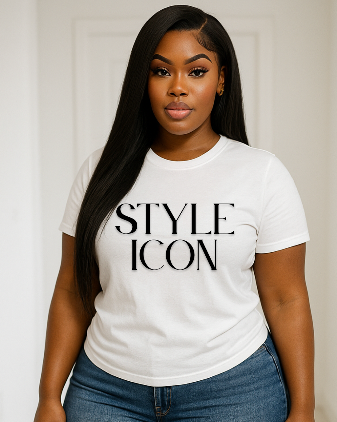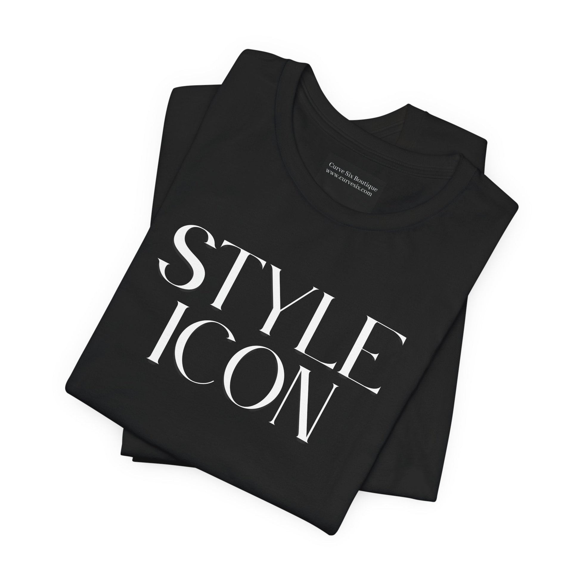 Graphic design tee with "Style Icon". This classic unisex jersey short sleeve tee fits like a well-loved favorite. Soft cotton and quality print make users fall in love with it over and over again. These t-shirts have-ribbed knit collars to bolster shaping. The shoulders are tapered for a better fit over time. Dual side seams hold the garment's shape for longer.