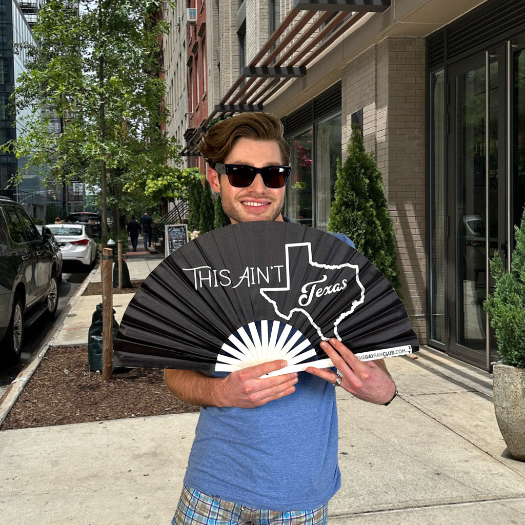 🤠 Bamboo folding fan with bold “This Ain’t Texas” statement