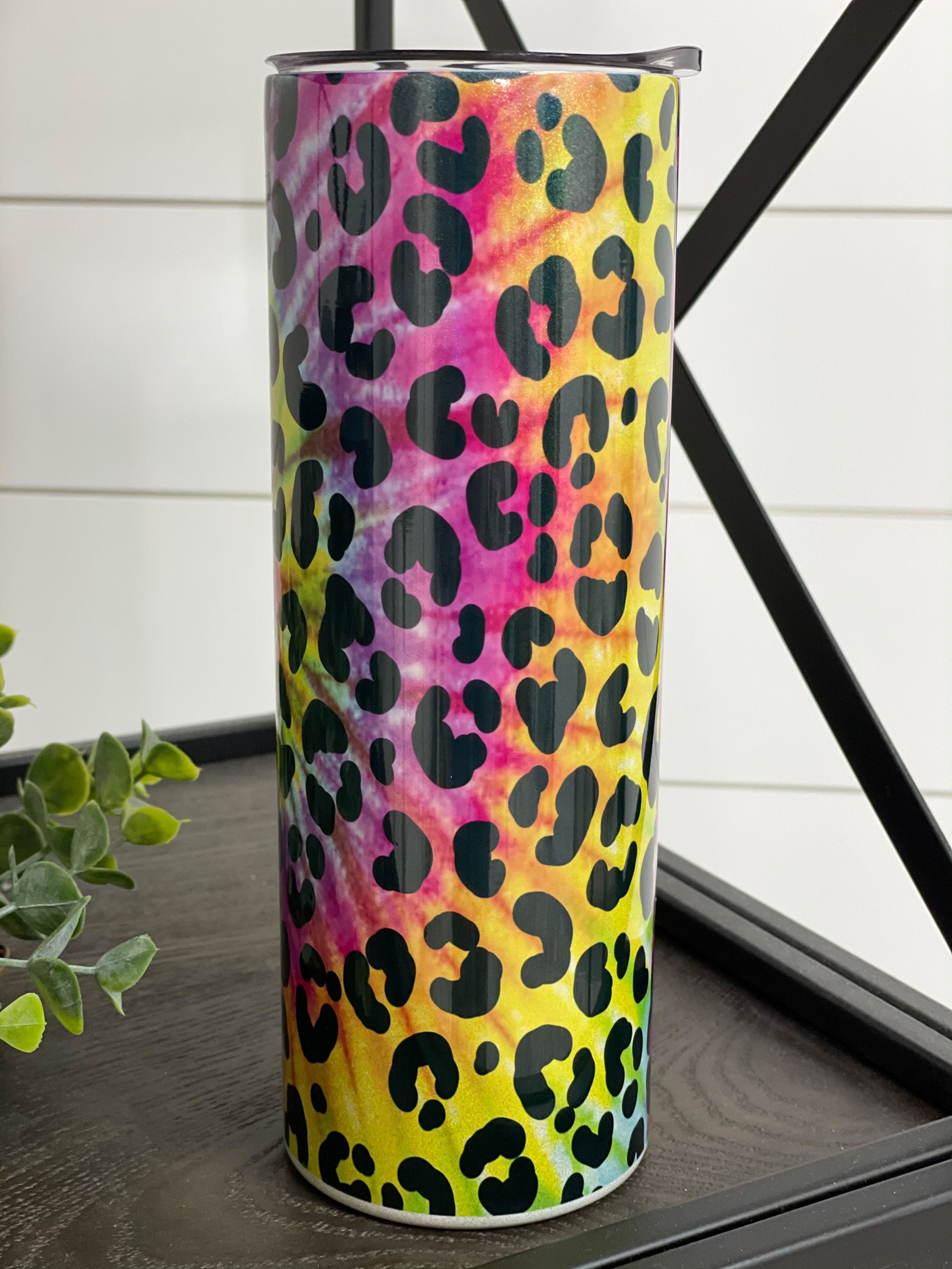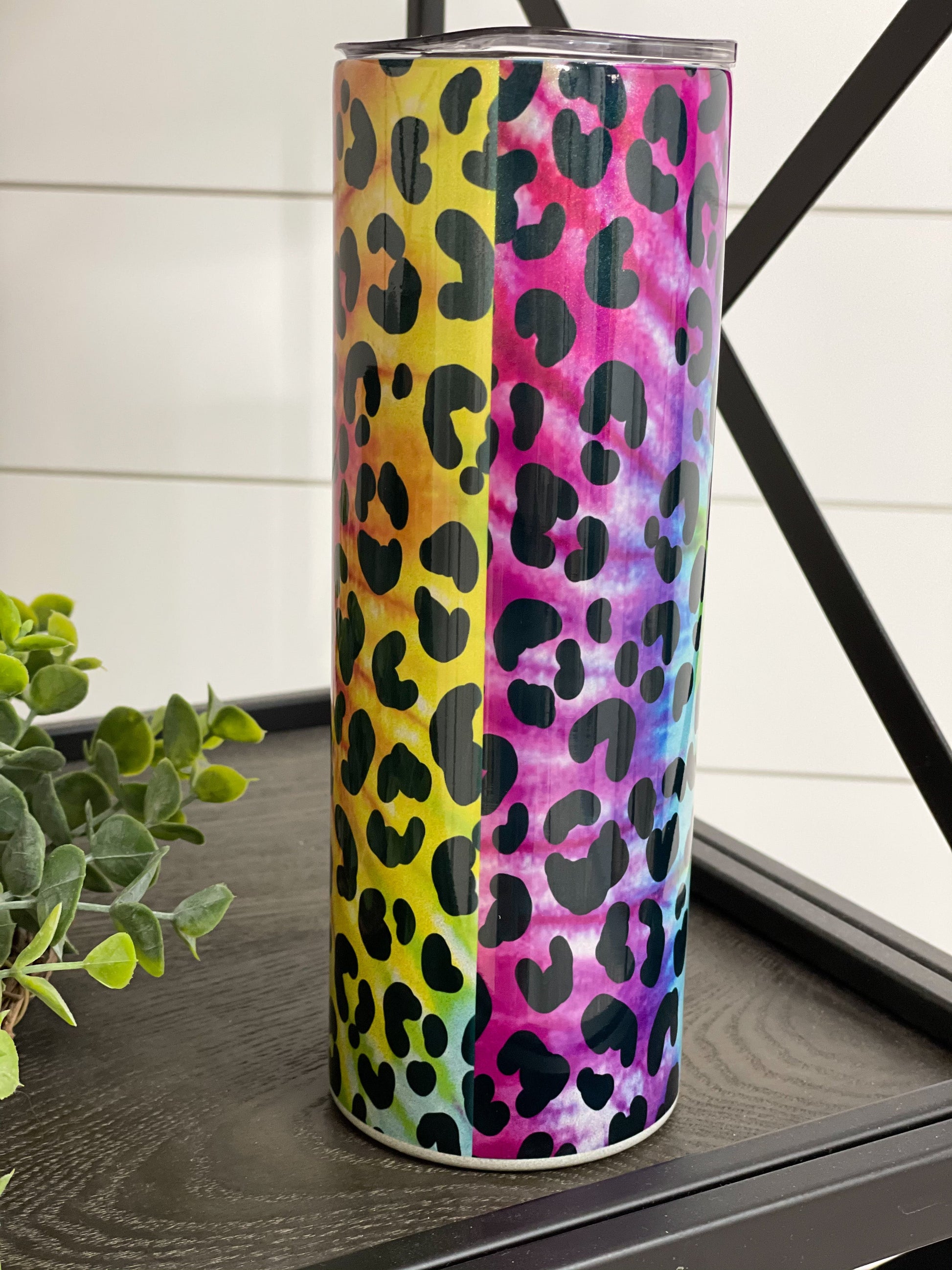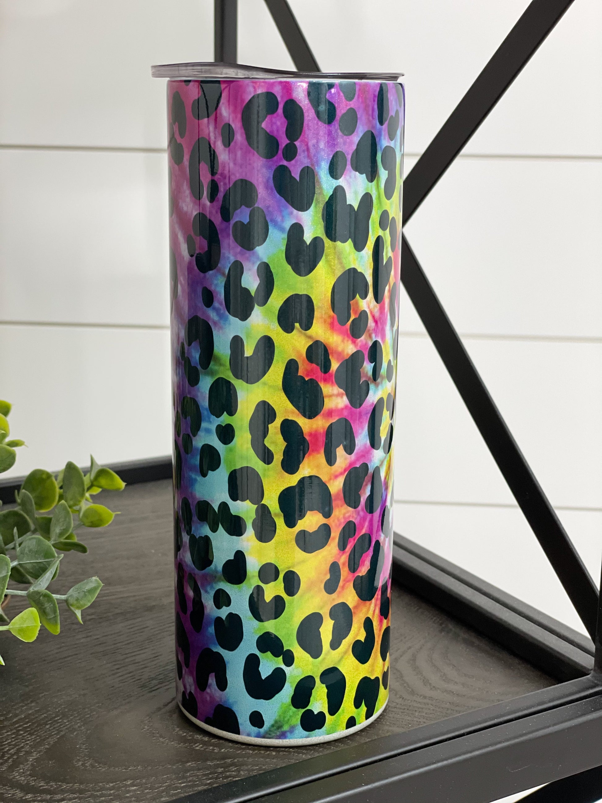 Tie Dye Leopard 20oz Shimmer Skinny Tumbler