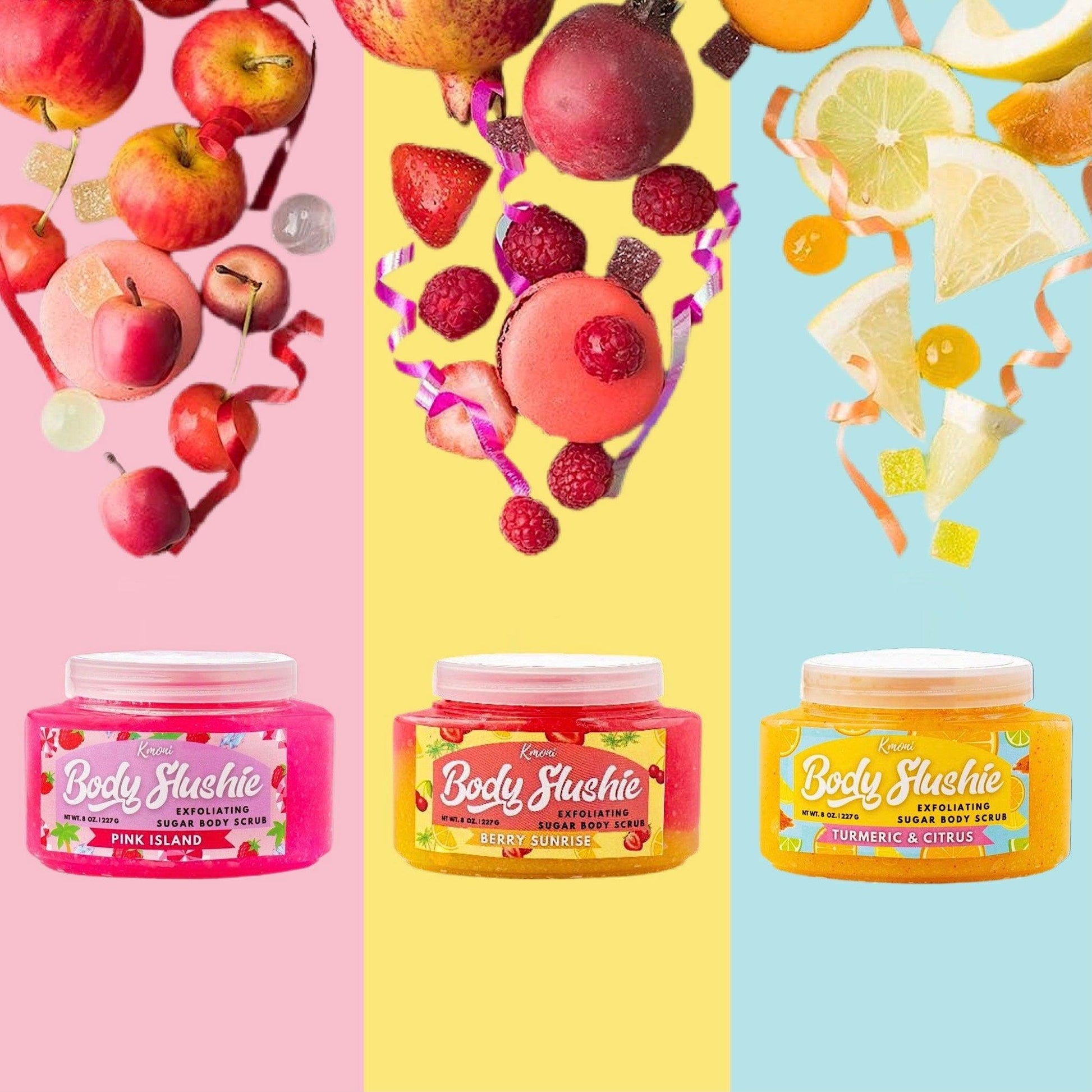Indulge yourself in our ultra-luxurious Body Slushie Sugar Scrub! Packed with deliciously zingy citrus and orange & grapefruit twisted with turmeric, it's armed with nourishing jojoba oil & oleic-rich safflower oil. Rub your way to super-soft skin - free of dull skin cells - with every use.