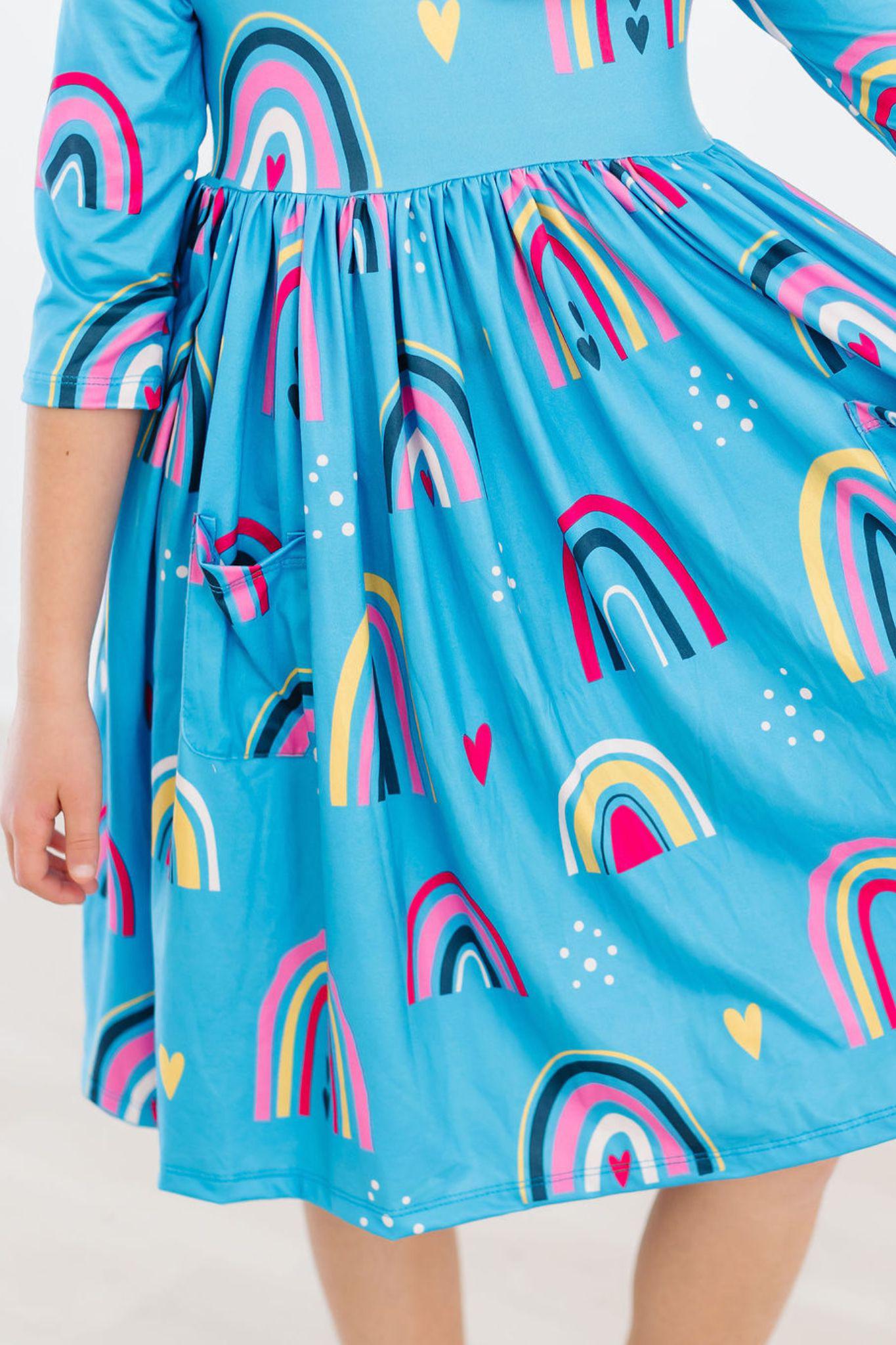 Turquoise Twilight 3/4 Sleeve Pocket Twirl Dress