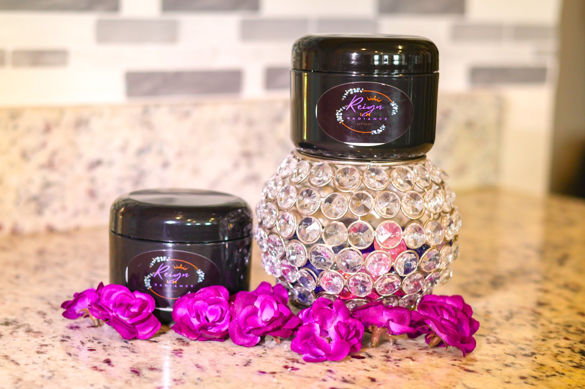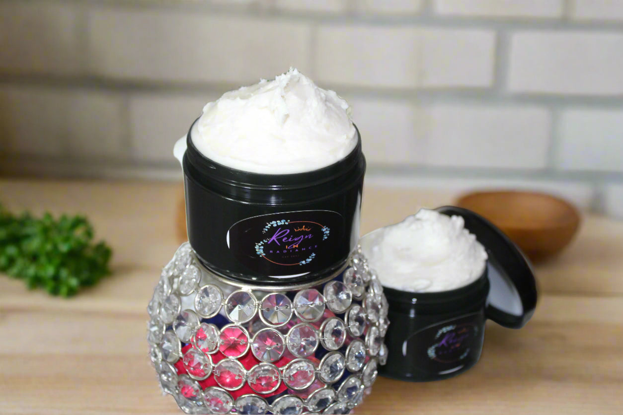 Melt into comfort with our Velvet Reign a whipped, ultra-rich moisturizer that nourishes your skin while wrapping you in the soft embrace of chamomile and warm cashmere. Crafted to calm irritation, soothe dryness, and leave your skin glowing with grace.
