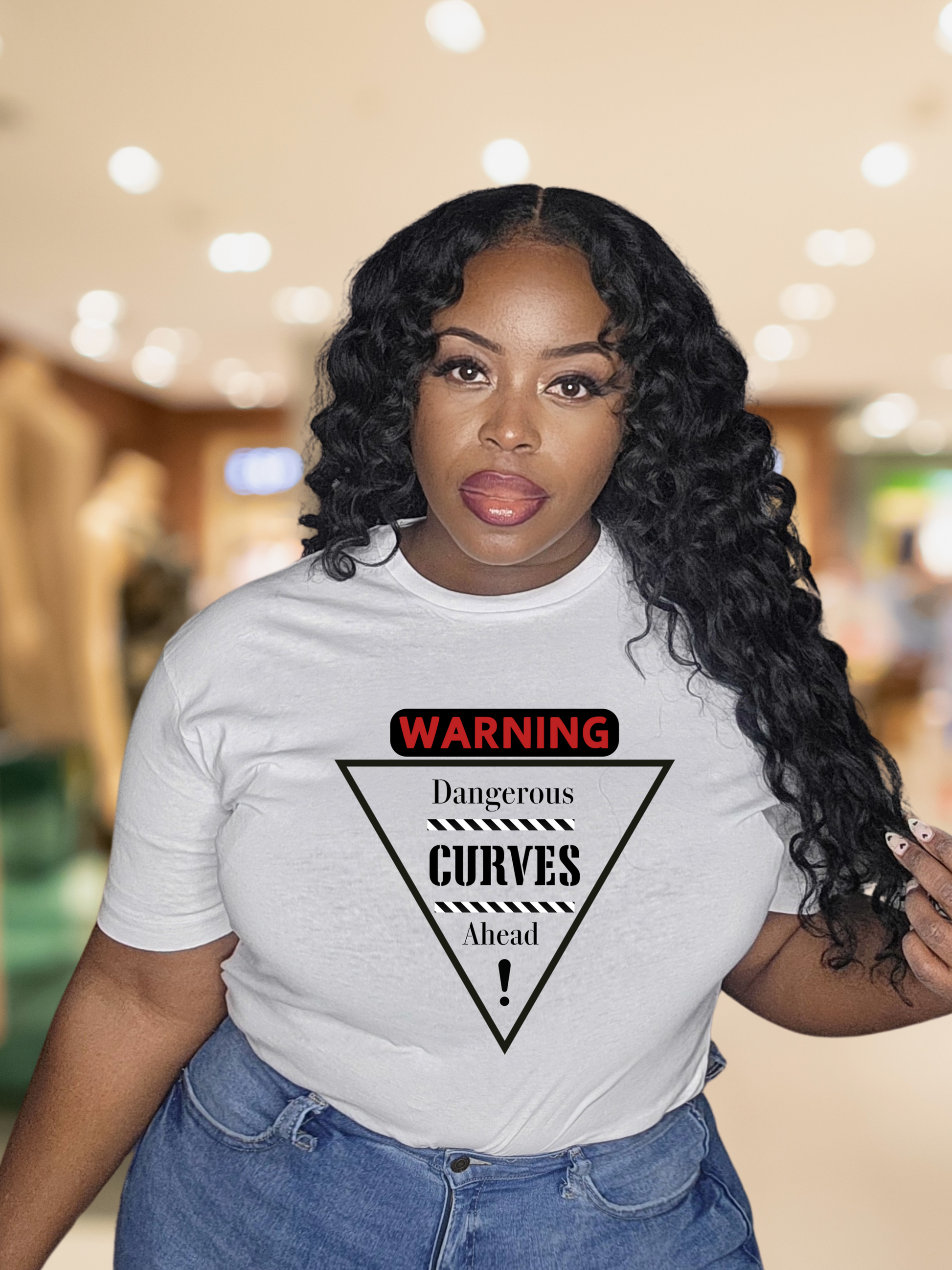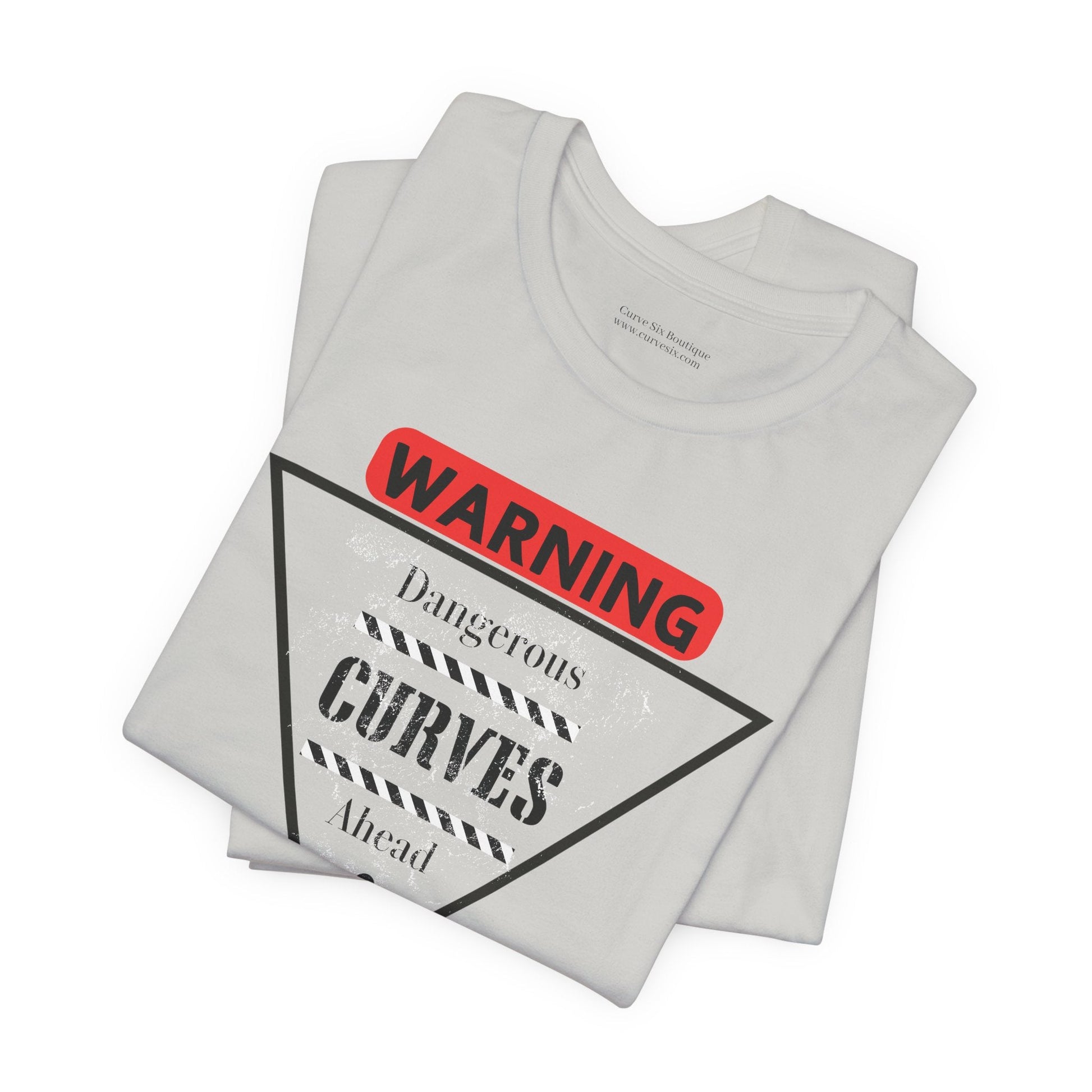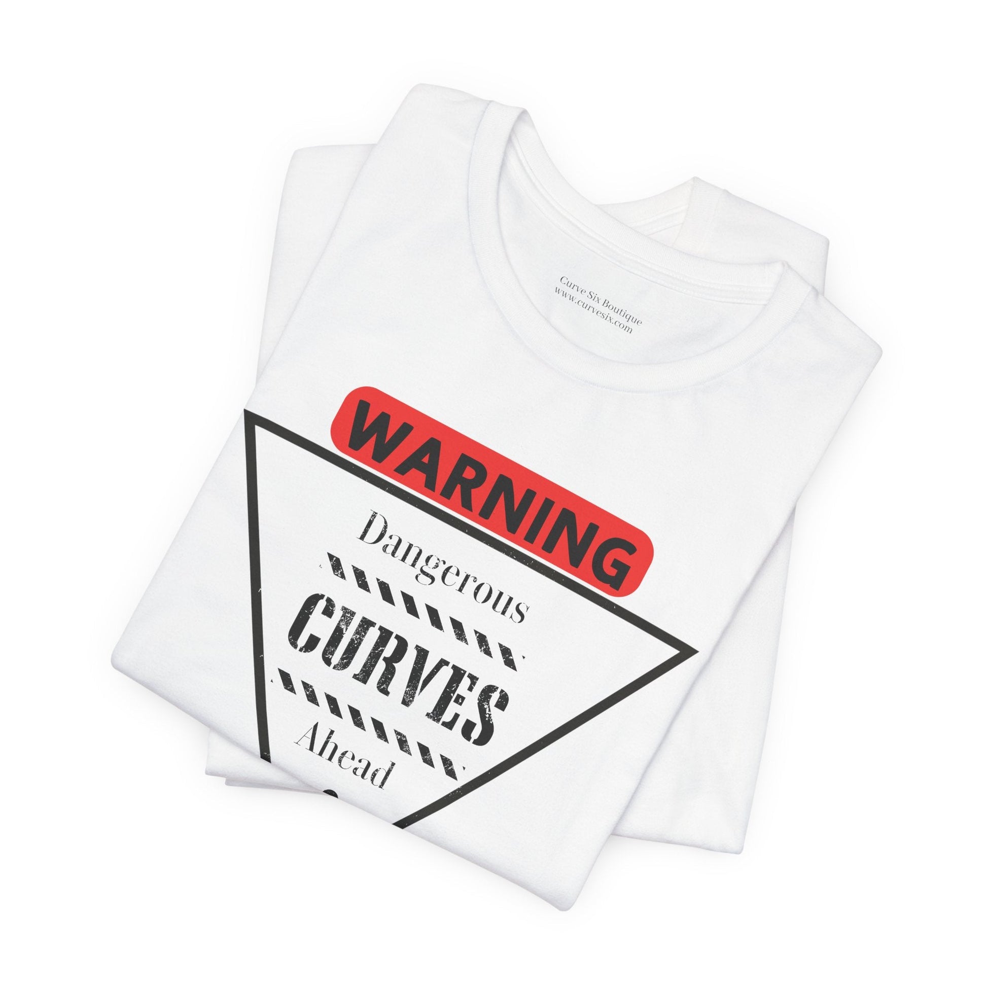 Graphic t-shirt with (Red) Warning and (Black) lettering Dangerous Curves Ahead. This classic unisex jersey short sleeve tee fits like a well-loved favorite. Soft cotton and quality print make users fall in love with it over and over again. These t-shirts have-ribbed knit collars to bolster shaping. The shoulders are tapered for a better fit over time. Dual side seams hold the garment's shape for longer.