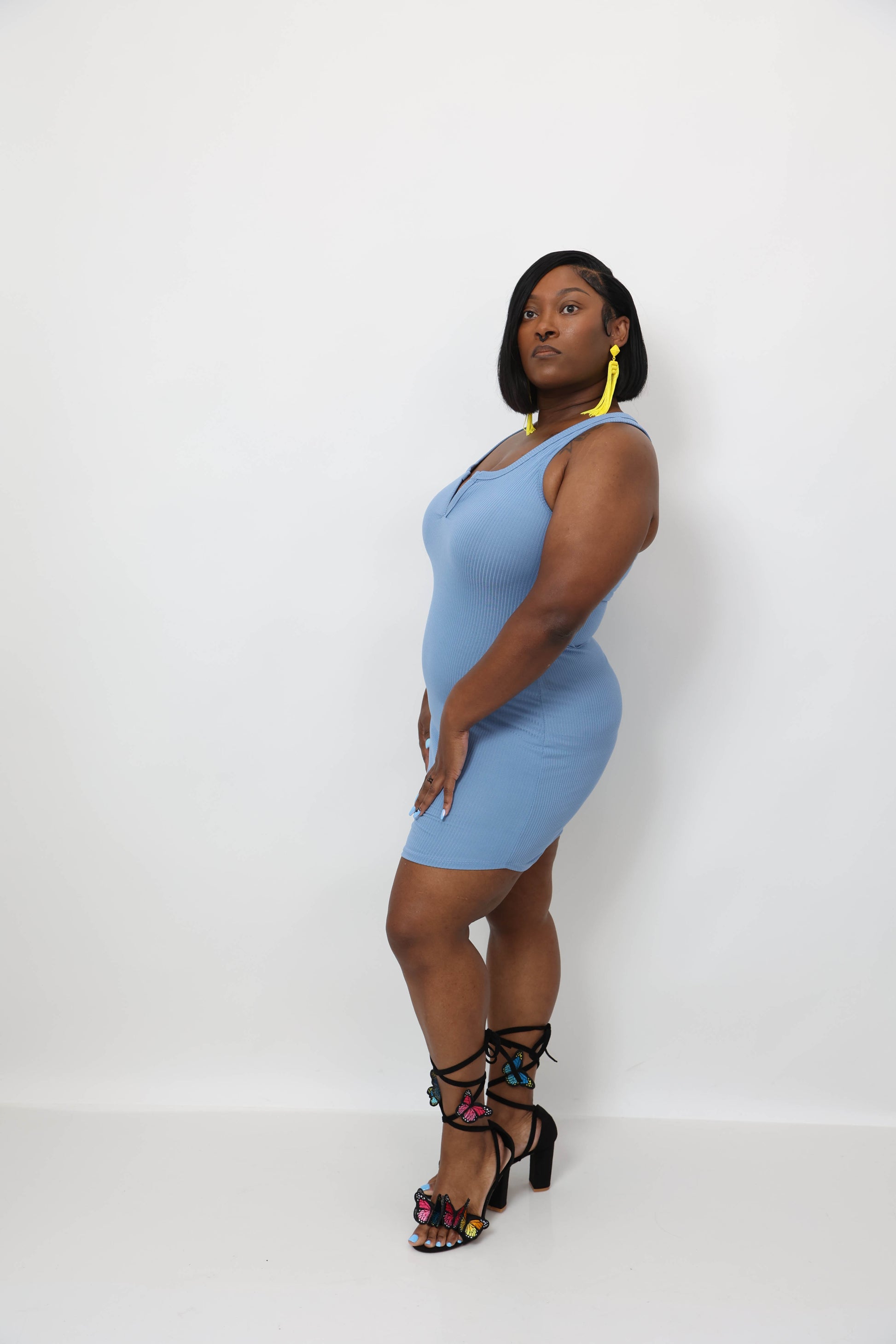 Why Choose Plus Size Ribbed Split Neck Tank Mini Dress