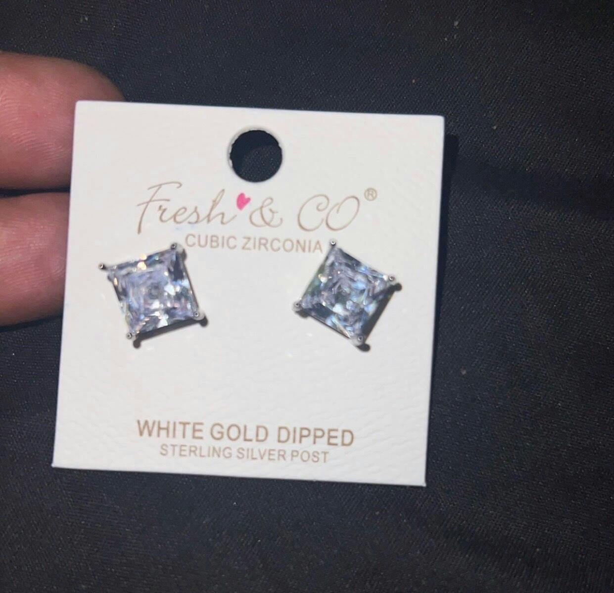 Add timeless sparkle to your jewelry collection with these silver cubic zirconia rhinestone earrings. Featuring a classic square-cut design, each stud shines with brilliant clarity and is set on a sterling silver post dipped in white gold for a luxe finish. Their compact size offers just the right amount of dazzle, perfect for everyday wear or elegant occasions. A refined staple you’ll reach for again and again.