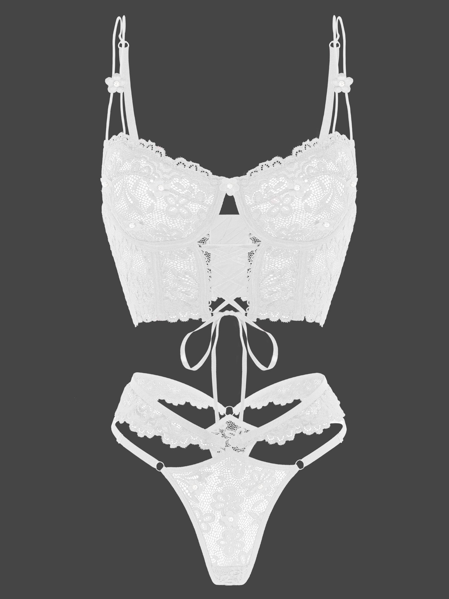 White Pearls Small Flower Lace Lingerie Set