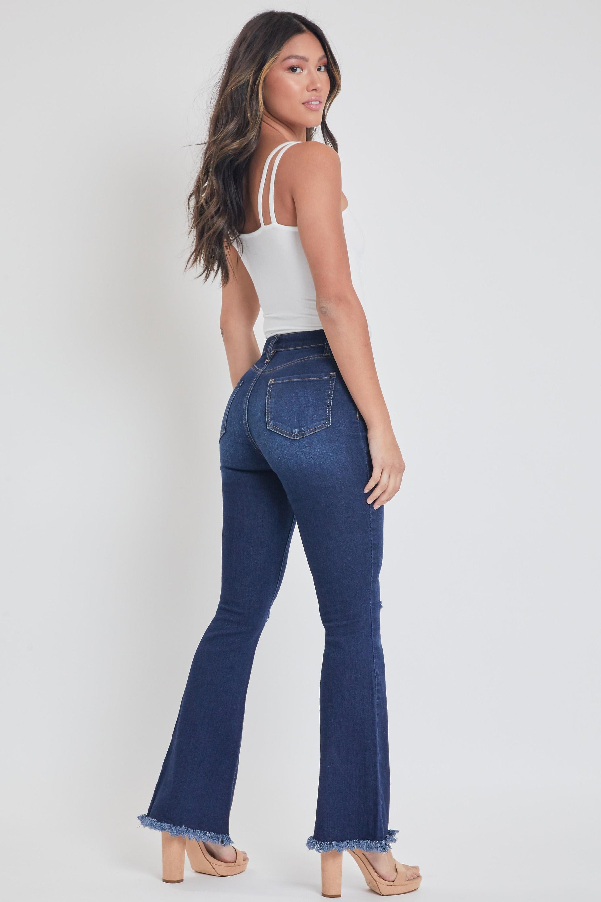 Add some retro-flare to any look with these essential jeans! Our Women's High Rise Super Flare Jean features a high-rise and a flared silhouette to give you a super flattering fit and the look of legs for days! Designed with a frayed hem to add some extra drama! Style them casually with a graphic tee and western-style booties, or dress them up with a bodysuit and heels. Either way, you’ll be sure to turn heads in these!
