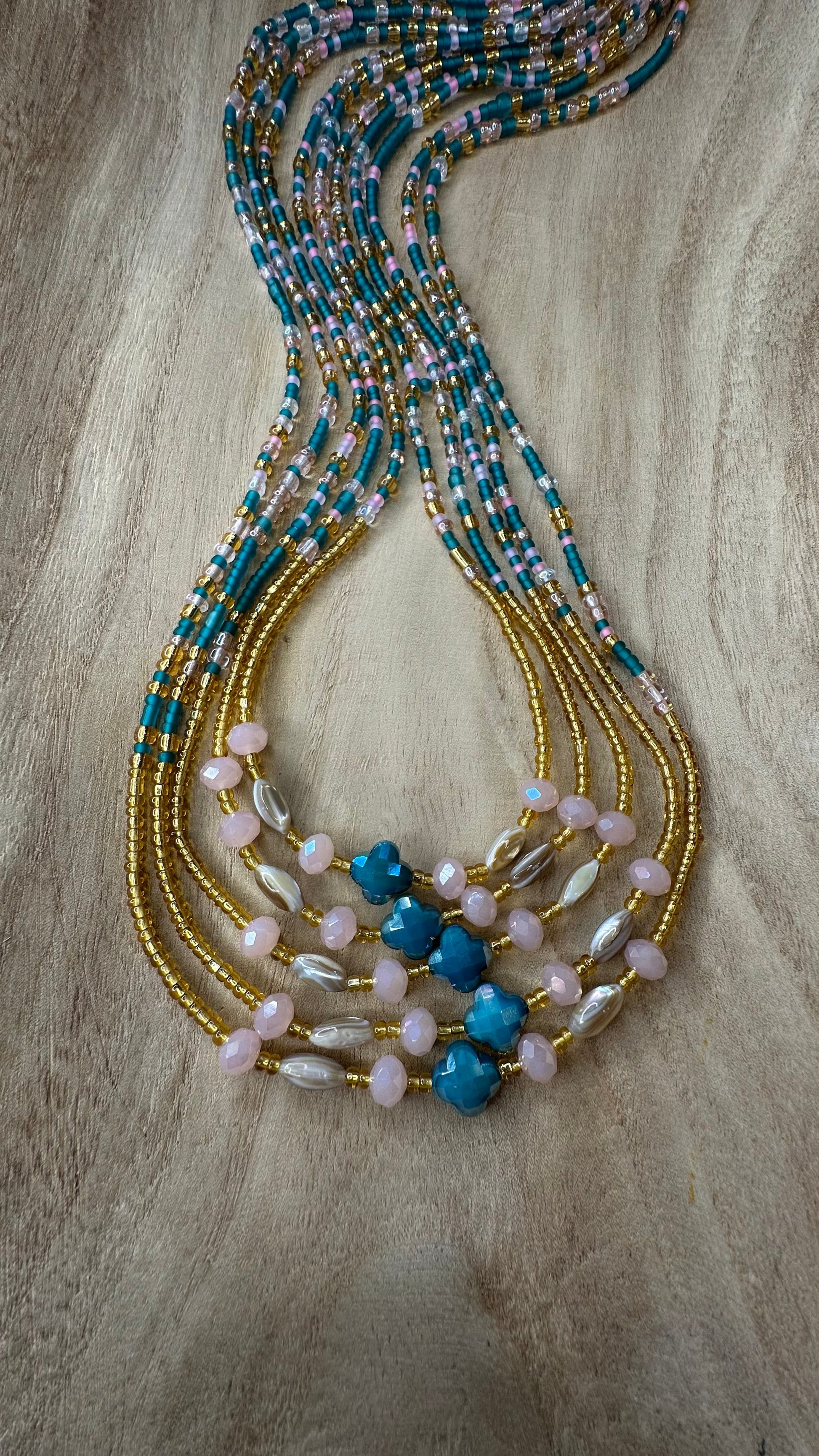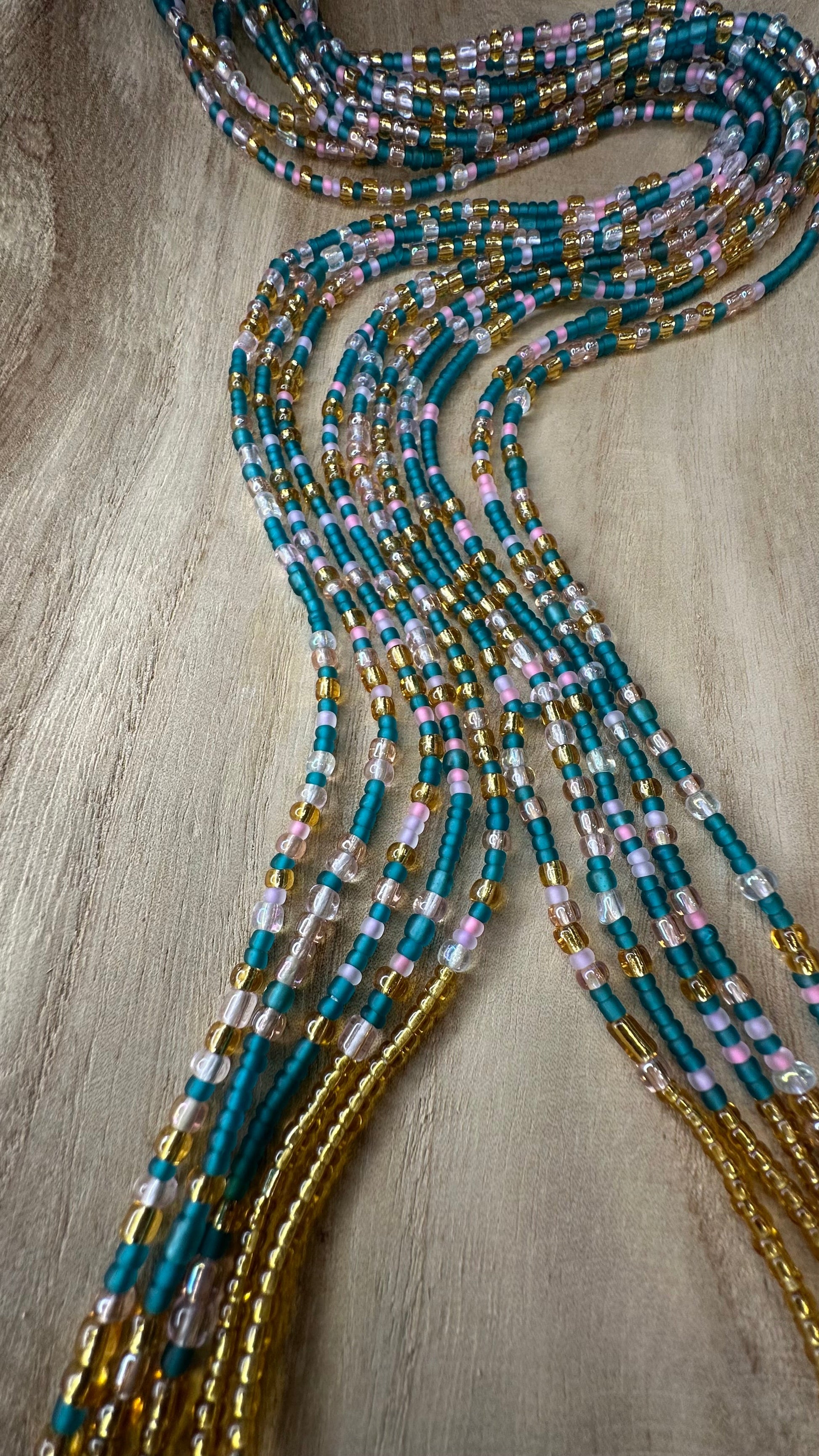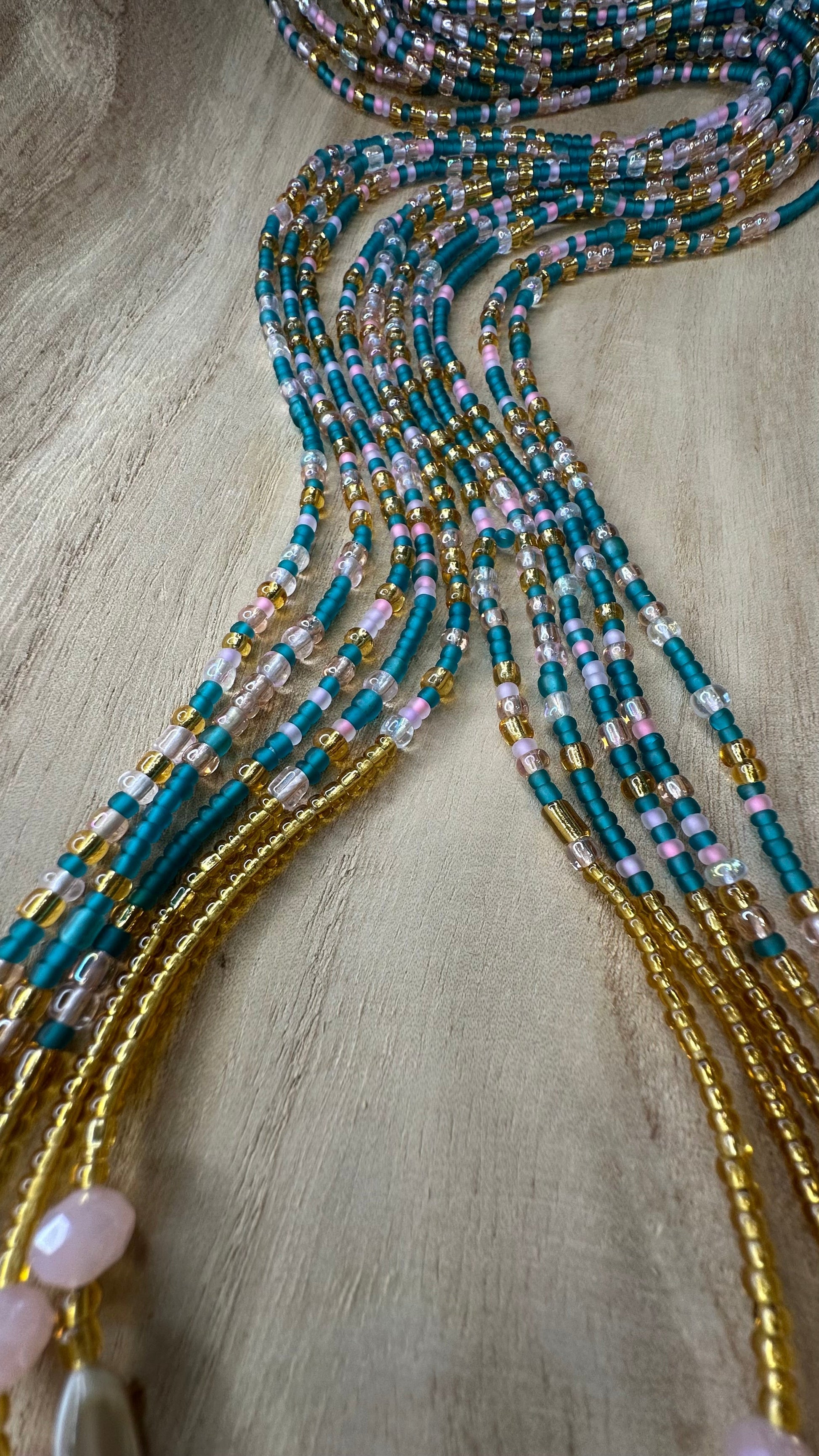 Share the love with XOXO waist bead & anklet. Yes this is a set! These pink and green beads feature a playful mix of hugs and kisses, accented with shells and crosses. Give yourself a sweet embrace with XOXO waist beads.
