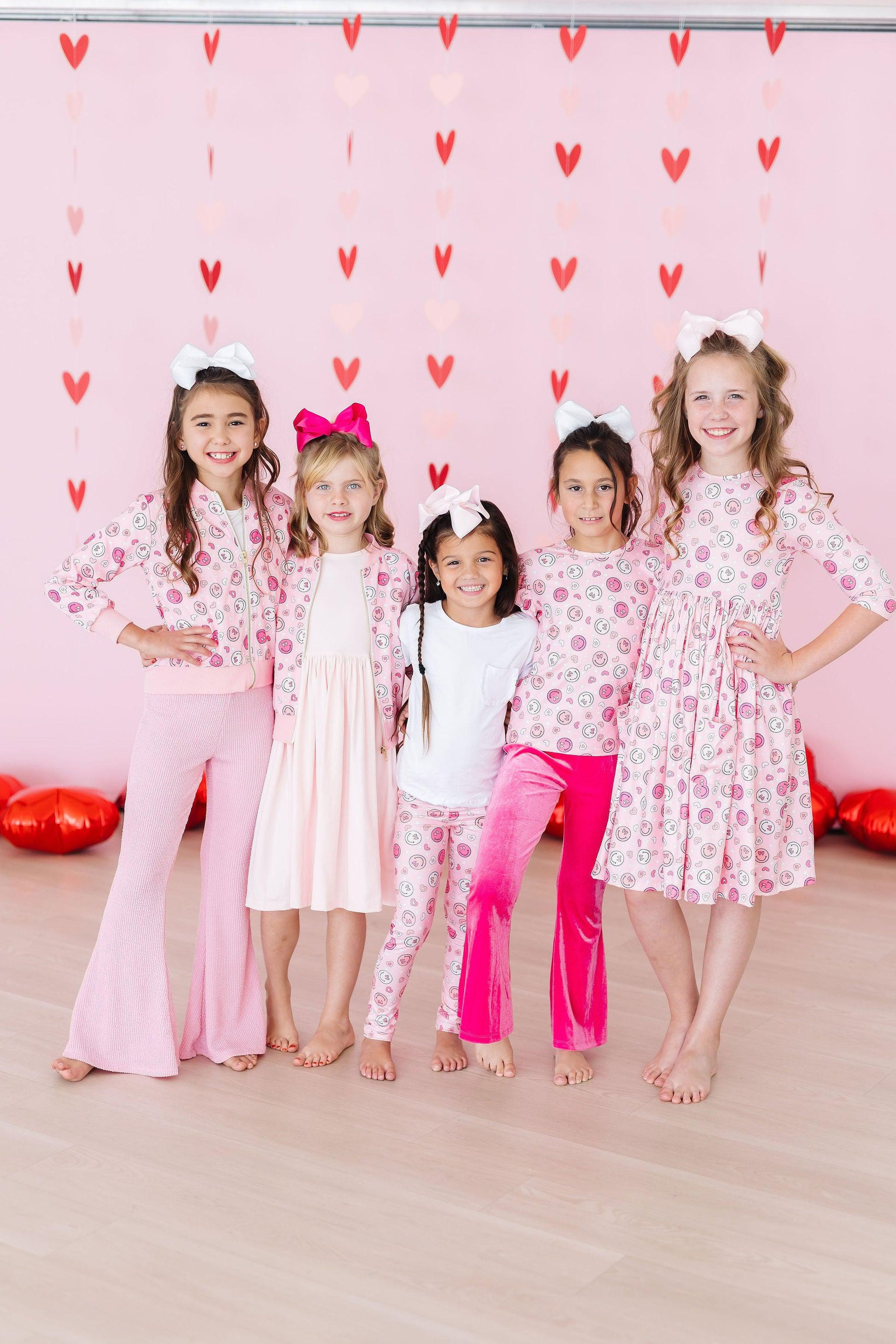 Our leggings are perfect for layering under dresses and skirts. Our founders designed these leggings when they could not find the perfect pair for Mila. Everything was either cut too low in the waist or fit too baggy in the leg. Our leggings are high waisted for extra bum coverage and cut slimmer in the leg for a tight fit.