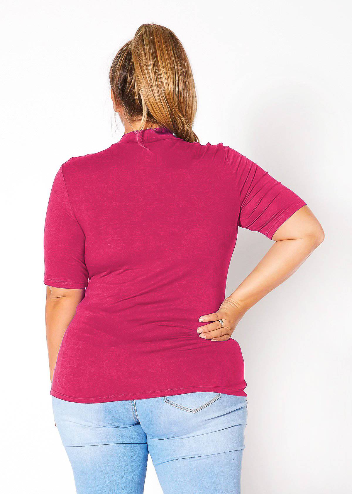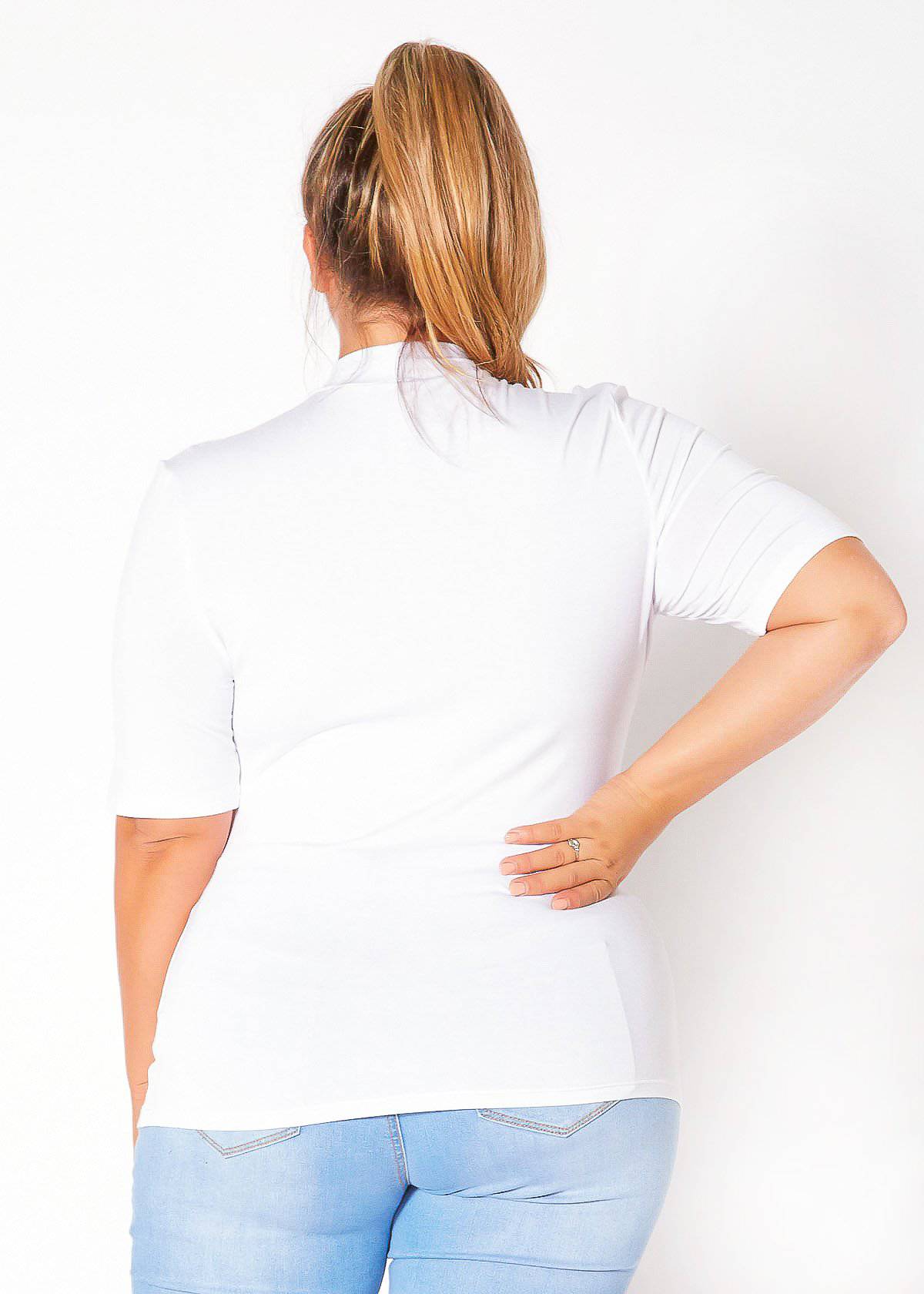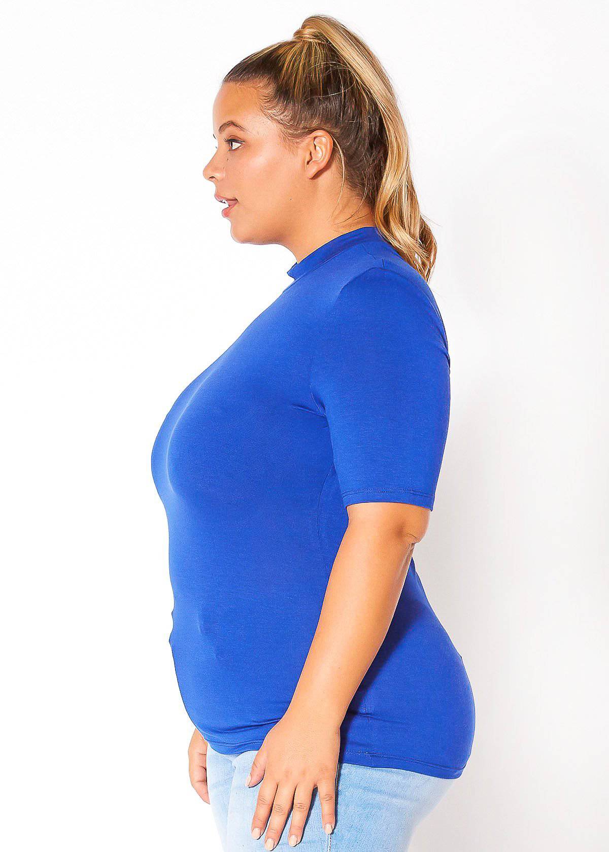 Look fashionable with the Plus Size Half Sleeve Turtle Neck Fitted Top. This versatile top is designed with a half-sleeve turtleneck fit and is made from high-stretch material for comfort and style. Look confident and chic in this flattering fitted top available in plus sizes.