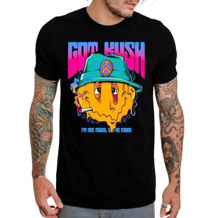 Shoulder to shoulder self jersey neck tape, Double needle bottom and sleeve hems